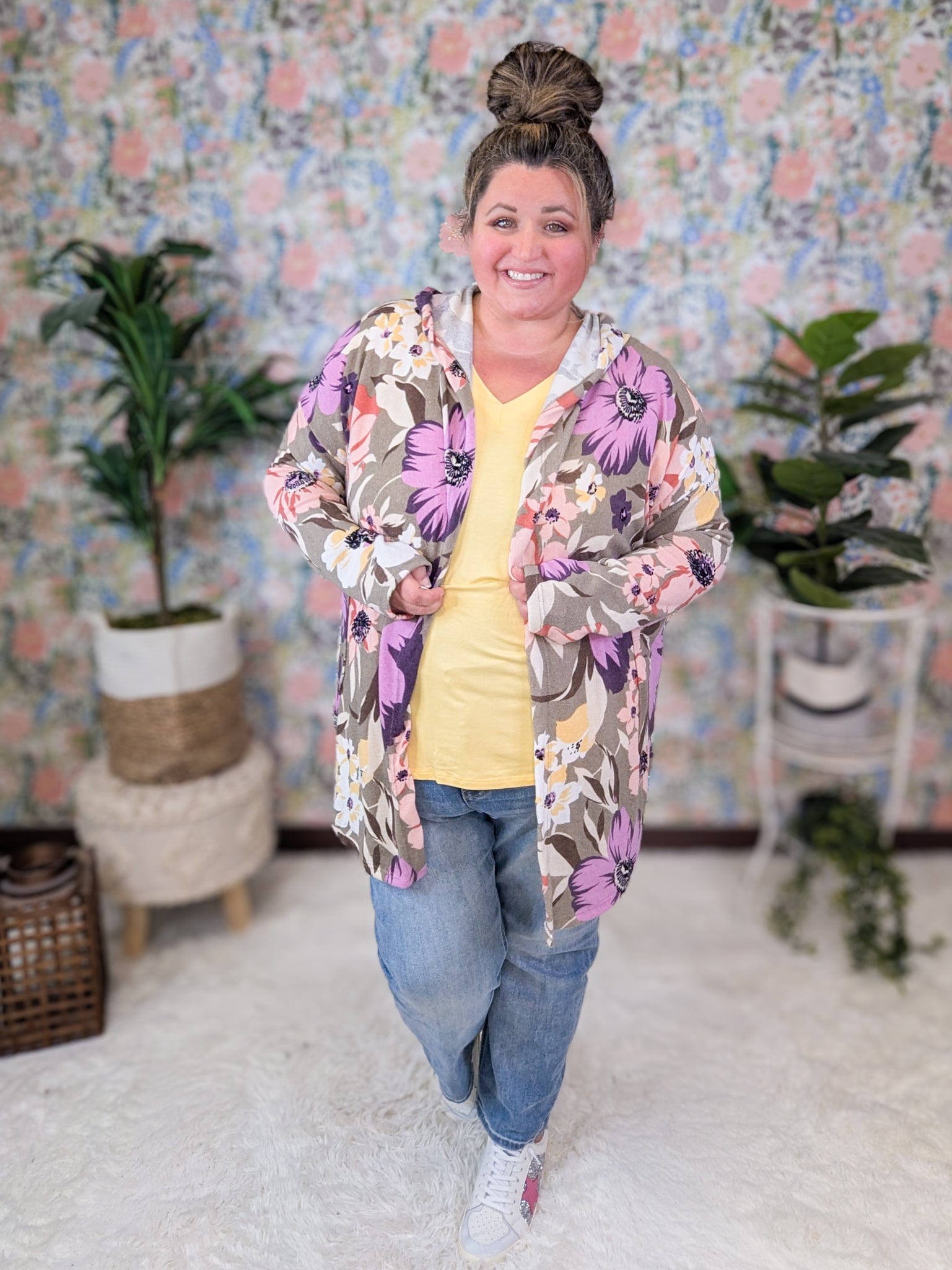 • Michele is an apple shaped size 20 wearing her sized down 1x for a cute slouchy fit