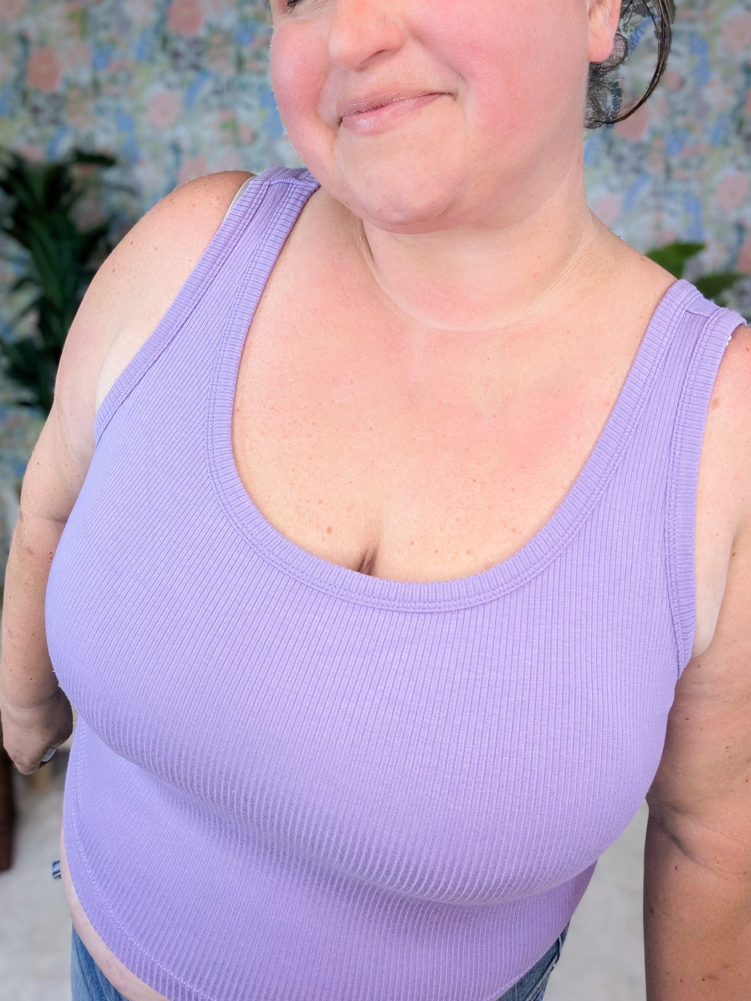 When you want the comfort of a tank but don’t feel like wrestling with layers, the Angela brami has your back. It’s got the built-in shelf bra with removable pads (aka one less thing to think about), super stretchy ribbed fabric that moves with you, and a cropped length that’s perfect for layering or lounging. Oh, and that grape purple? She’s bold, she’s fun, and she’s definitely not your boring basic.