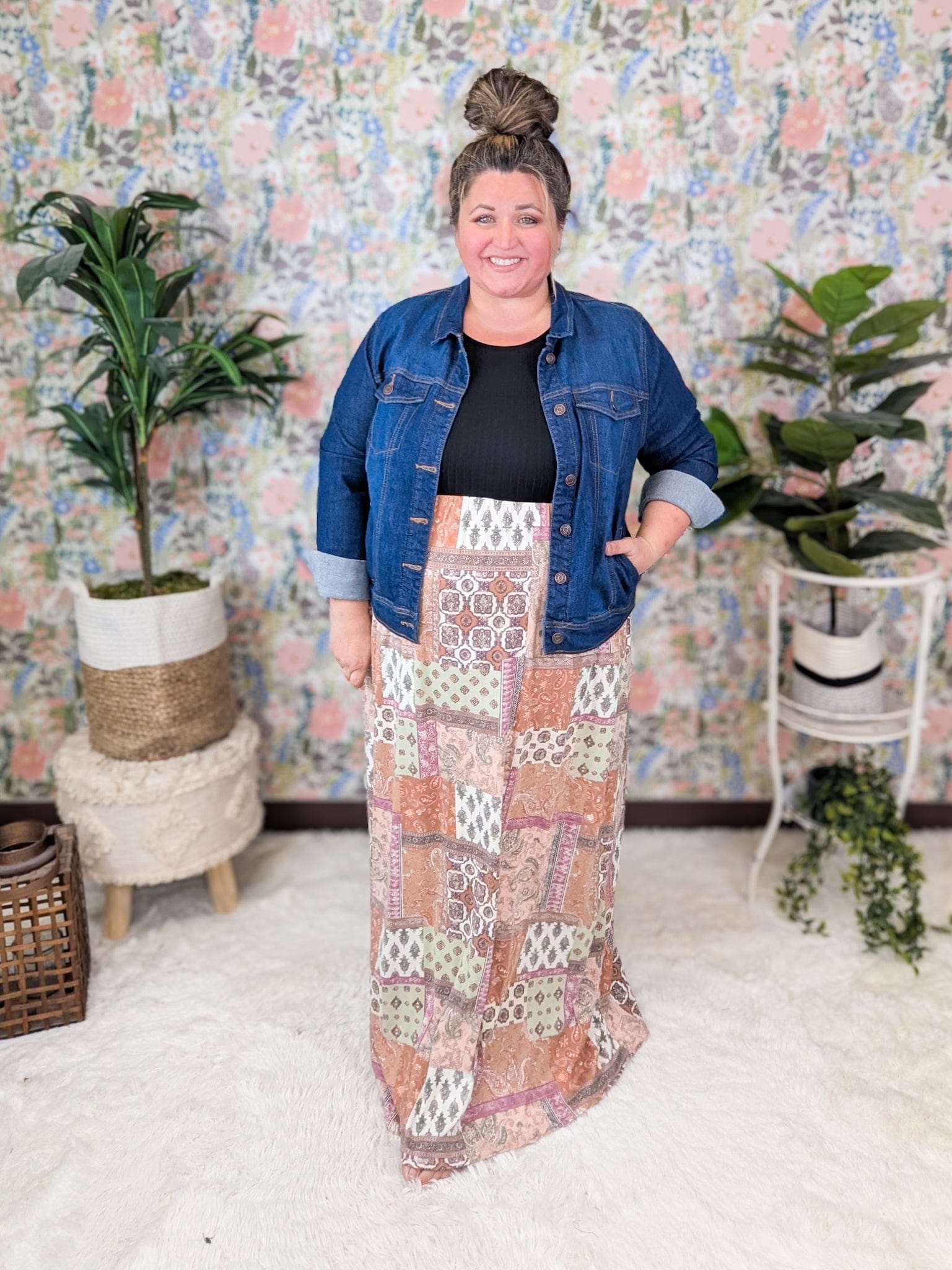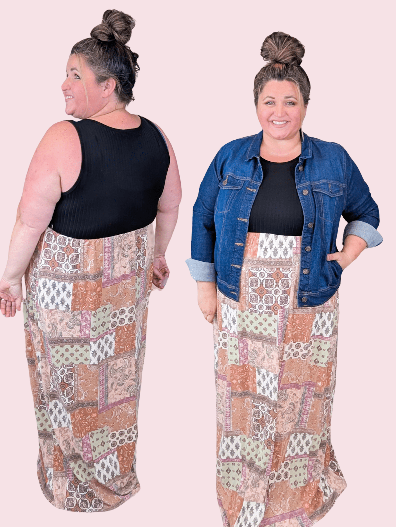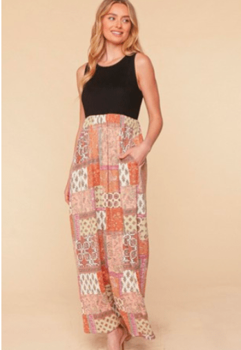 Stacy Black Top Maxi Dress w/Paisley Patchwork Bottom