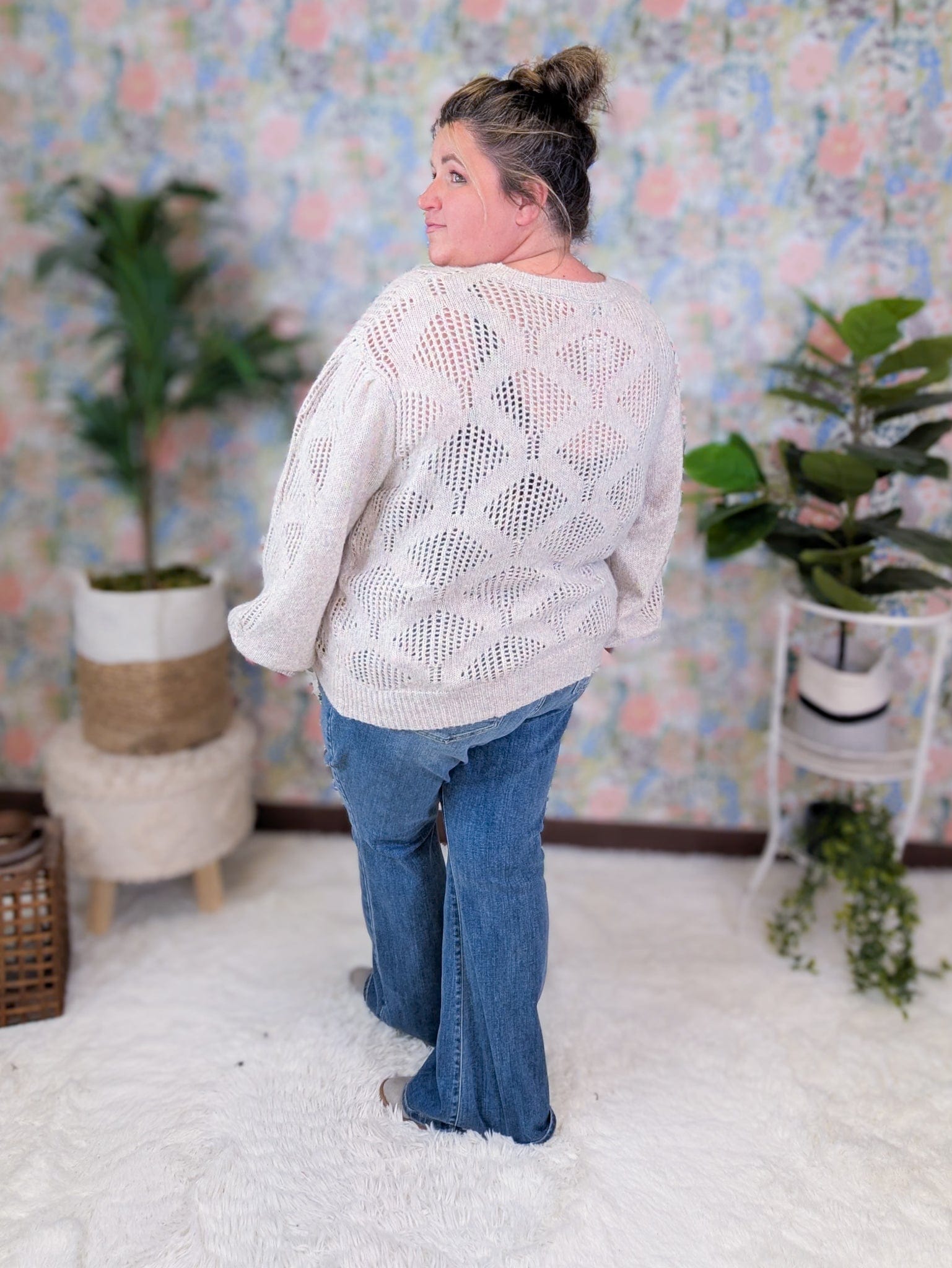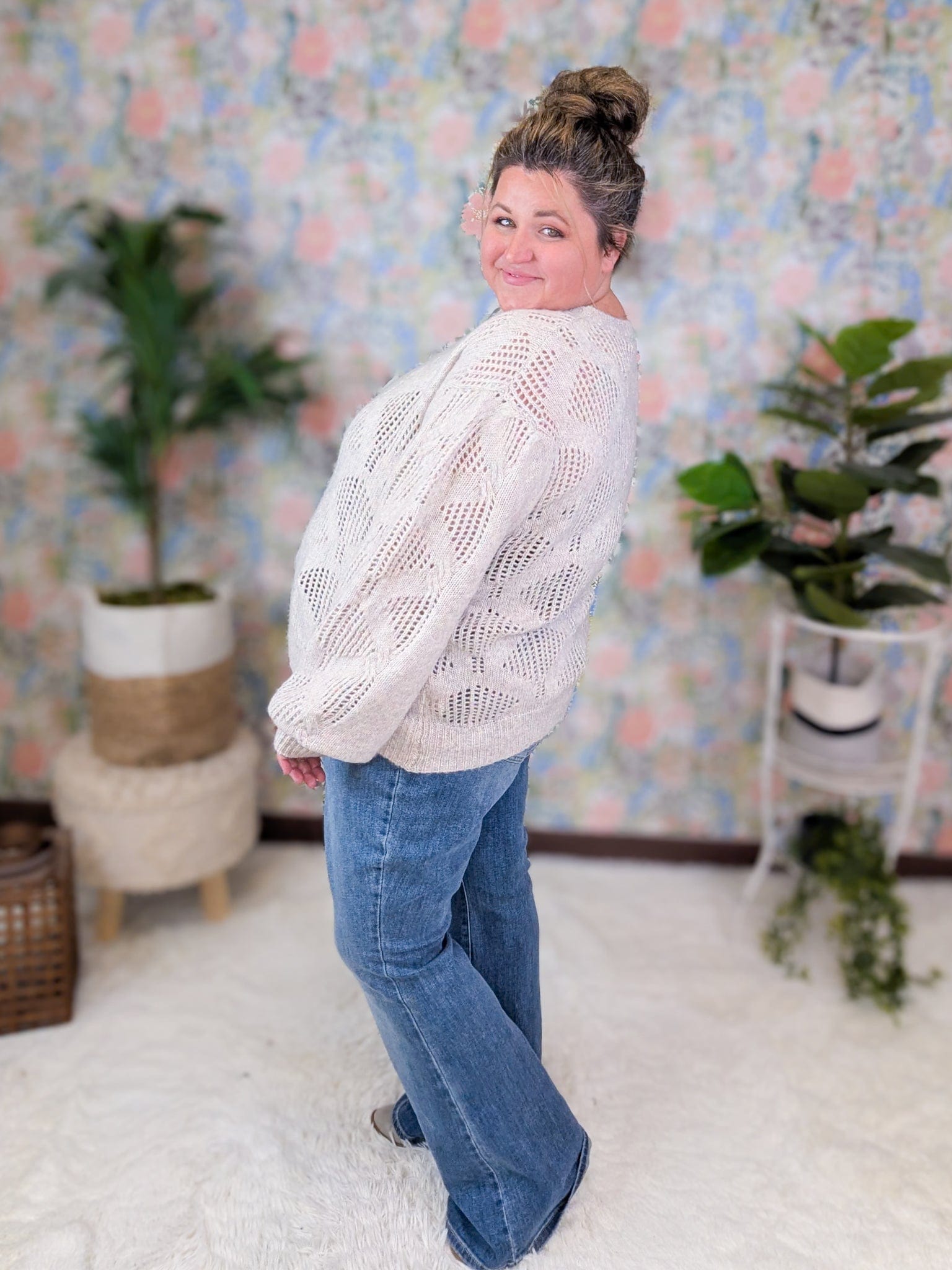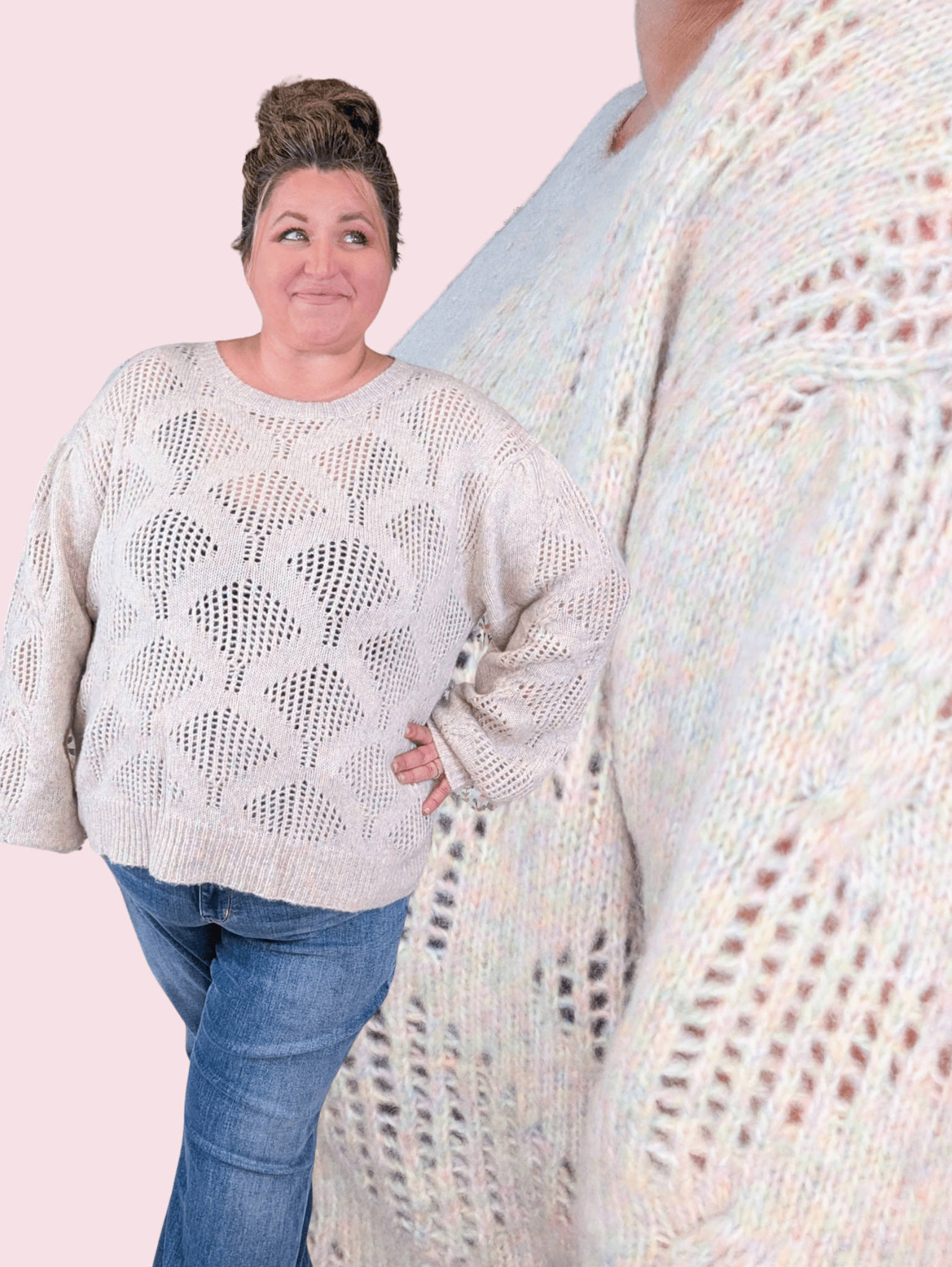 When you want a sweater that’s soft, airy, and anything but basic, this is it. From afar, it gives that neutral oatmeal vibe, but up close you’ll see the prettiest rainbow speckle woven throughout. The open knit keeps it lightweight and breathable with just enough texture to stand out.