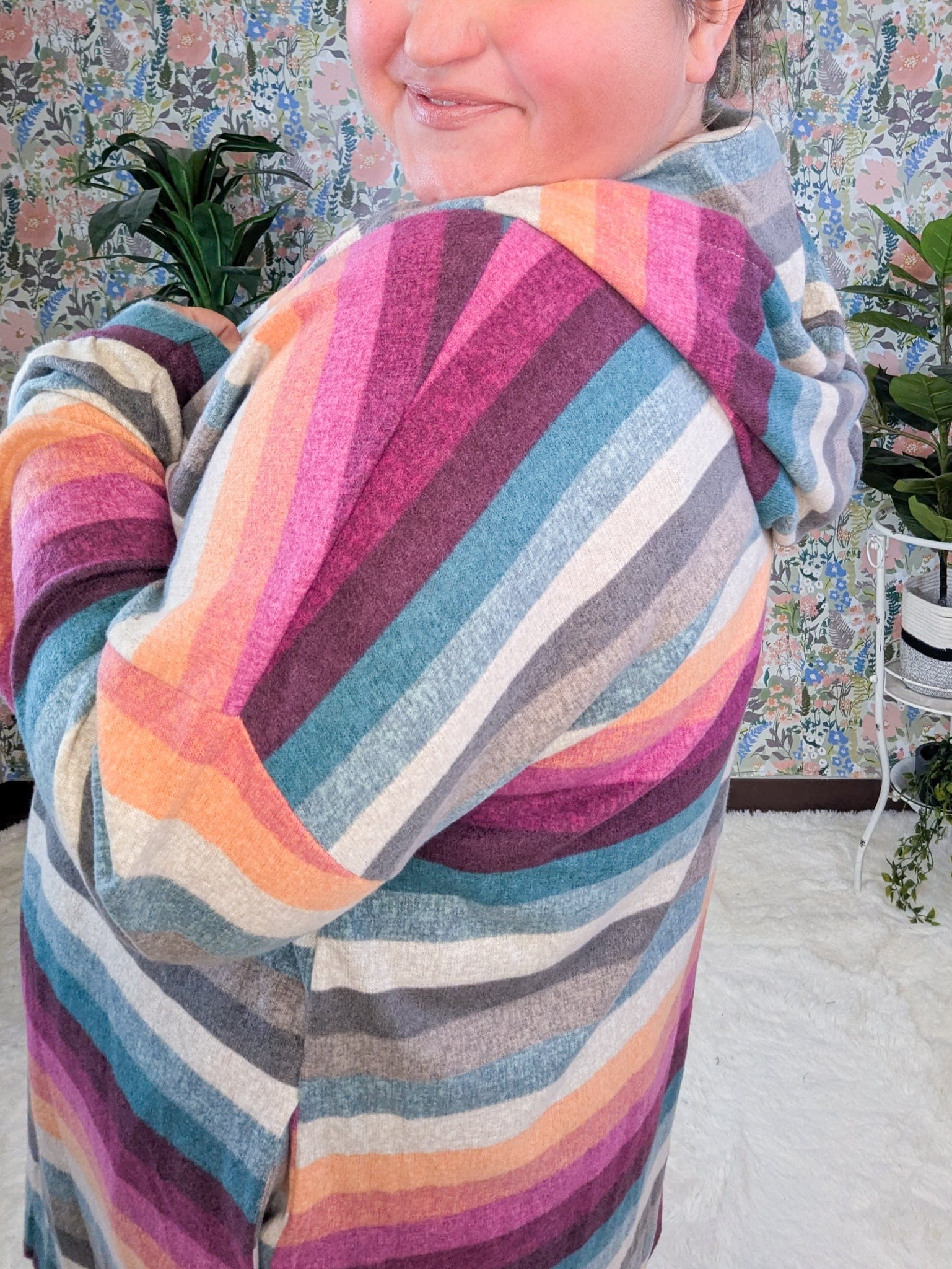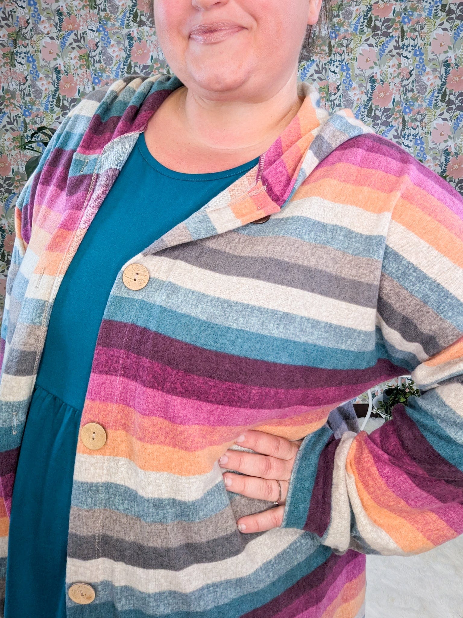 Patsy Multi Stripe Button Front Hooded Cardigan