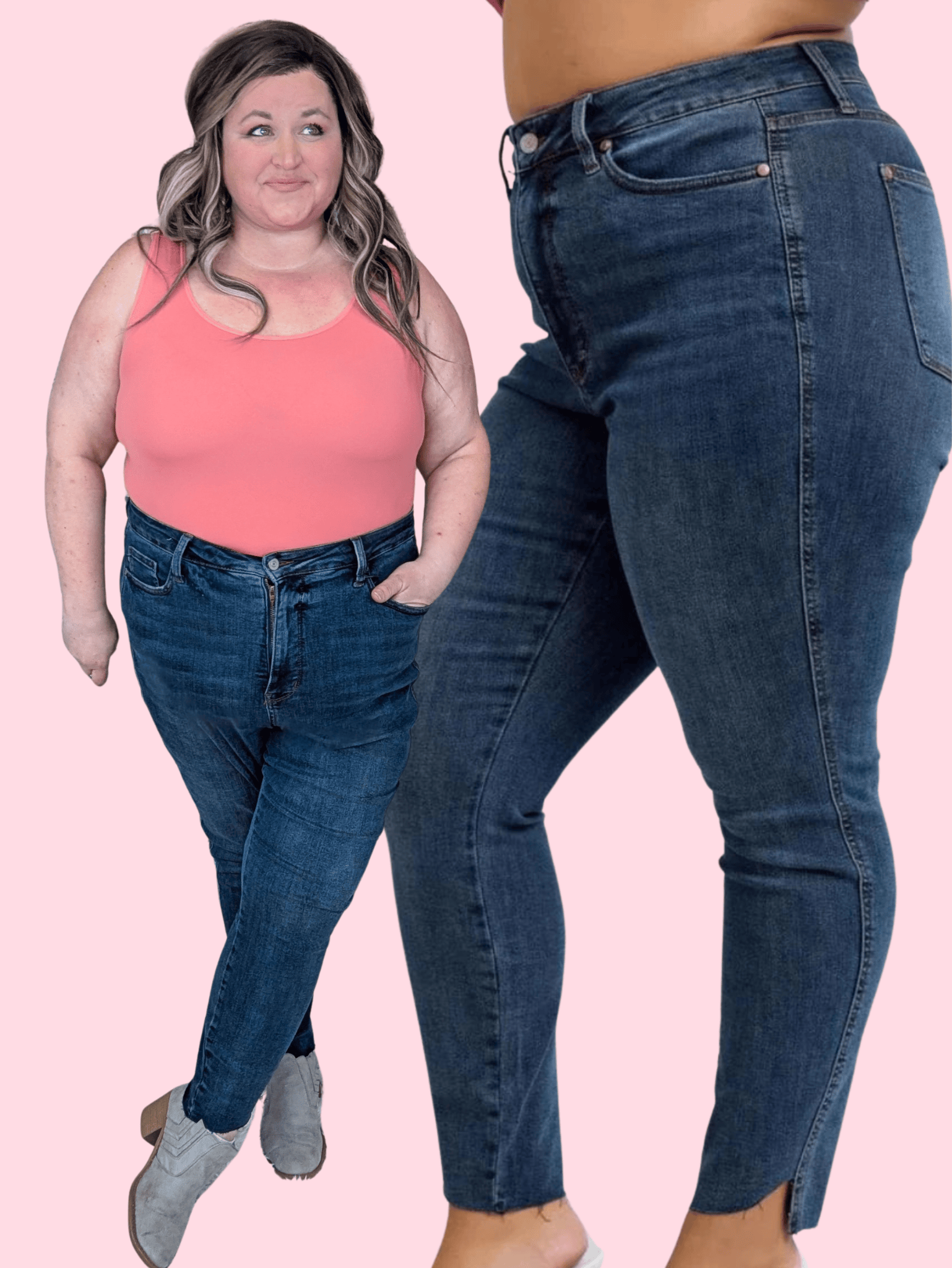 If you’ve ever wanted a classic skinny that actually feels good on and gives you a little extra confidence through the belly, this pair is it. The tulip hem is such a fun, flattering twist that shows off your shoes without trying too hard, and the wash keeps these easy enough for everyday while still polished enough for work. Cute details, great hold, and that wear-with-everything vibe we’re always chasing.