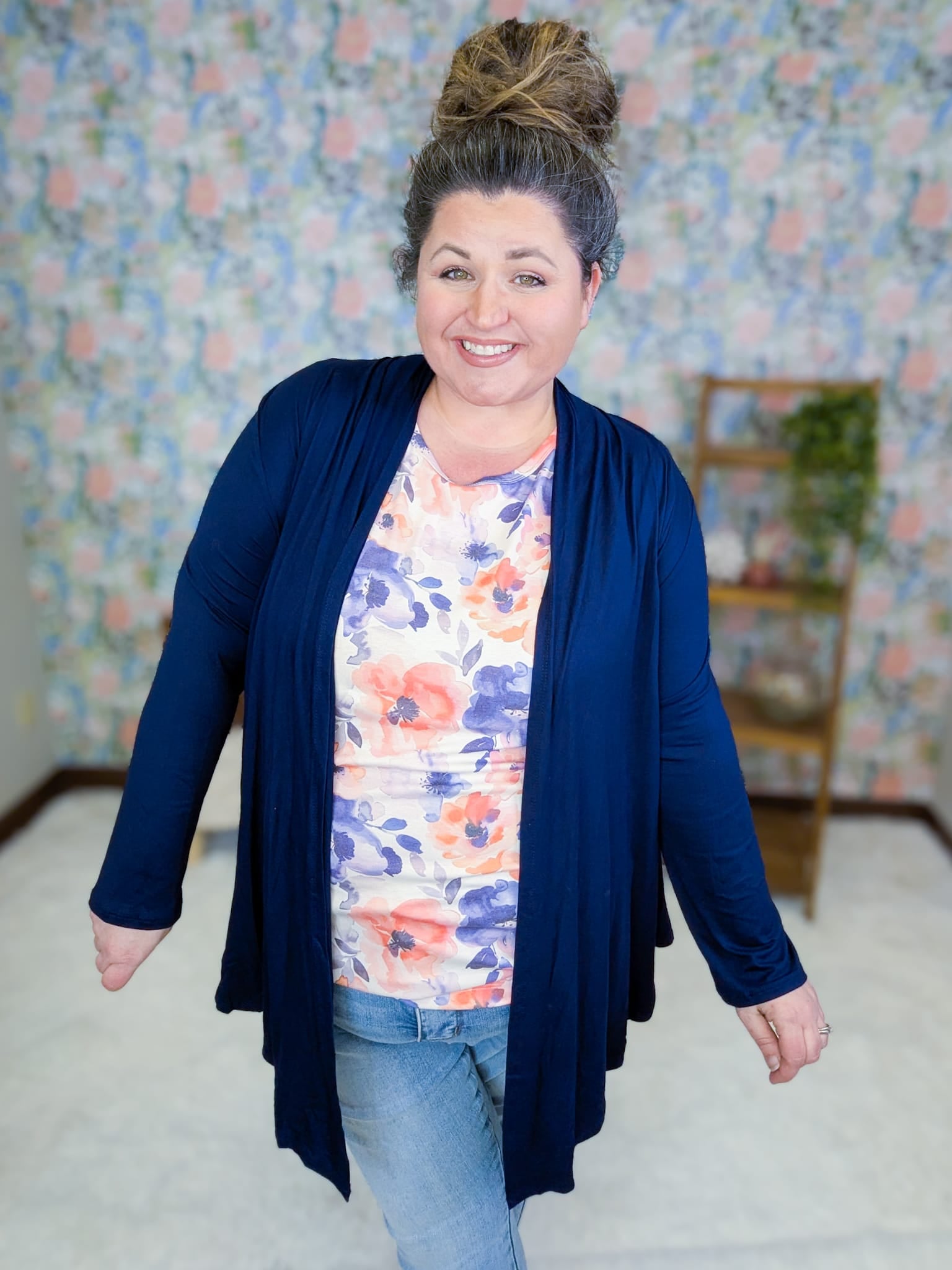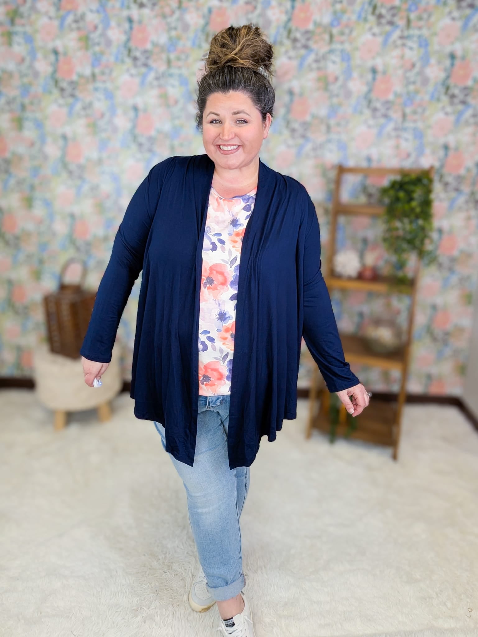 - Navy is paired with our Livi floral tank in ivory sunset