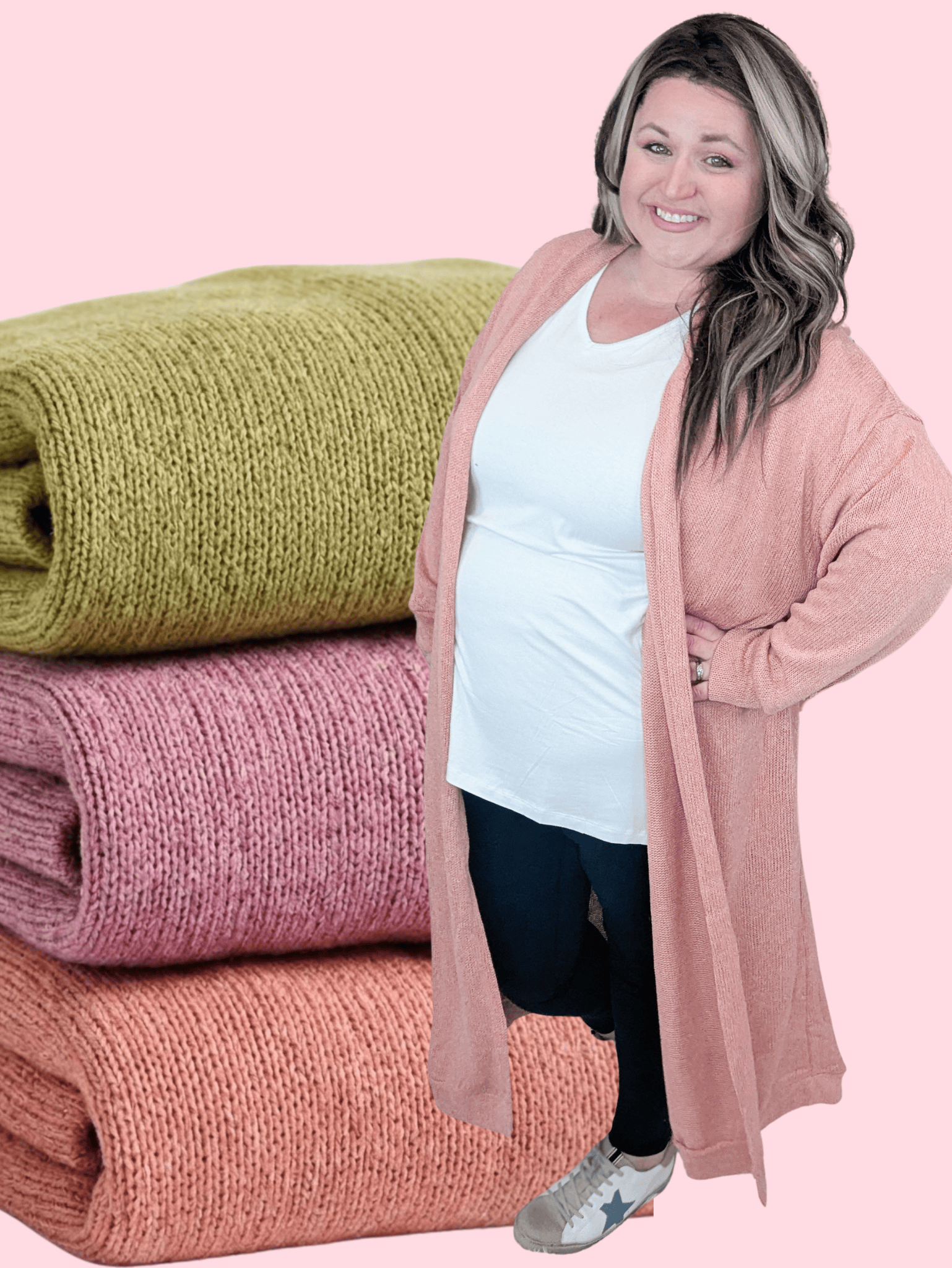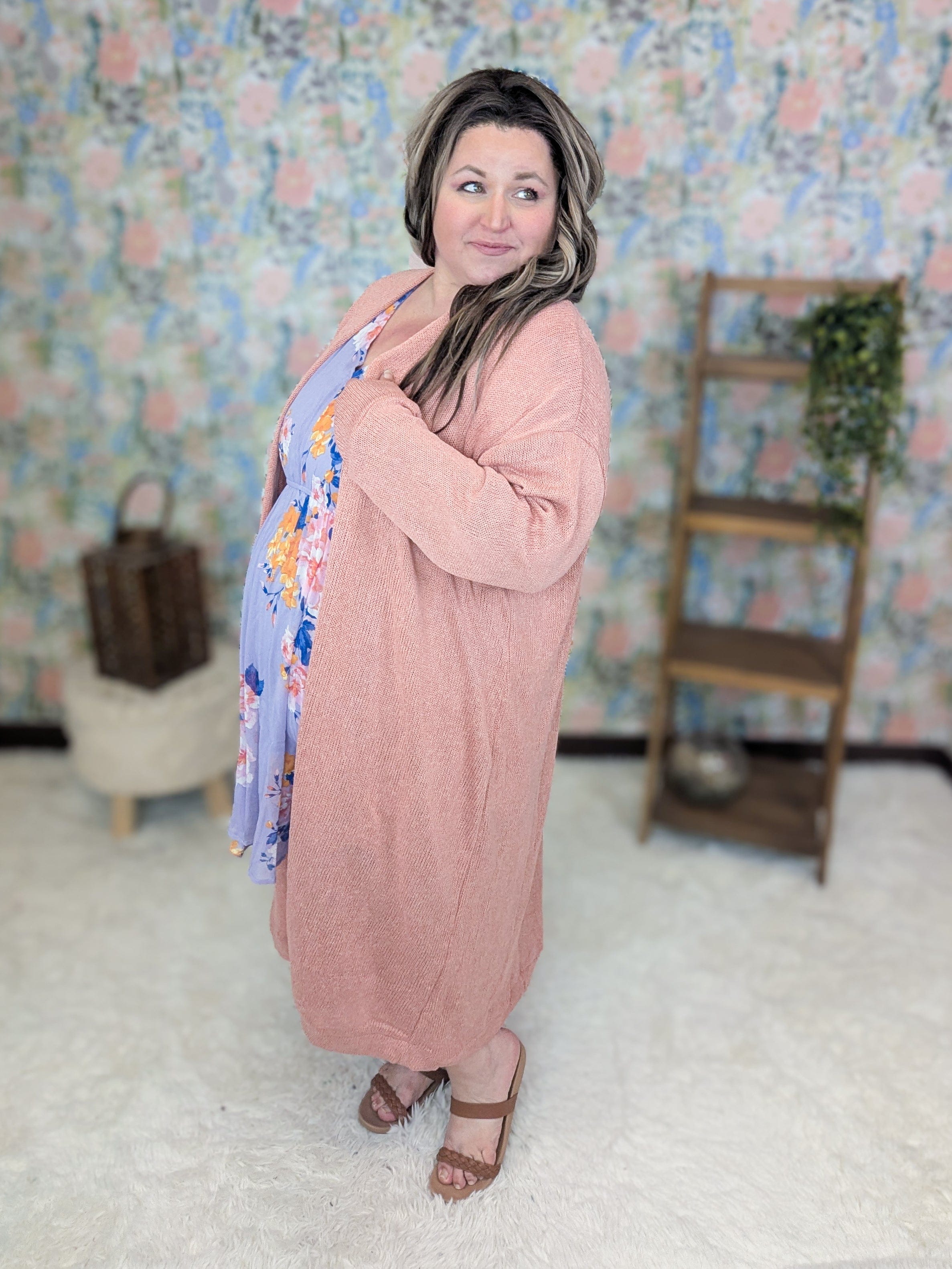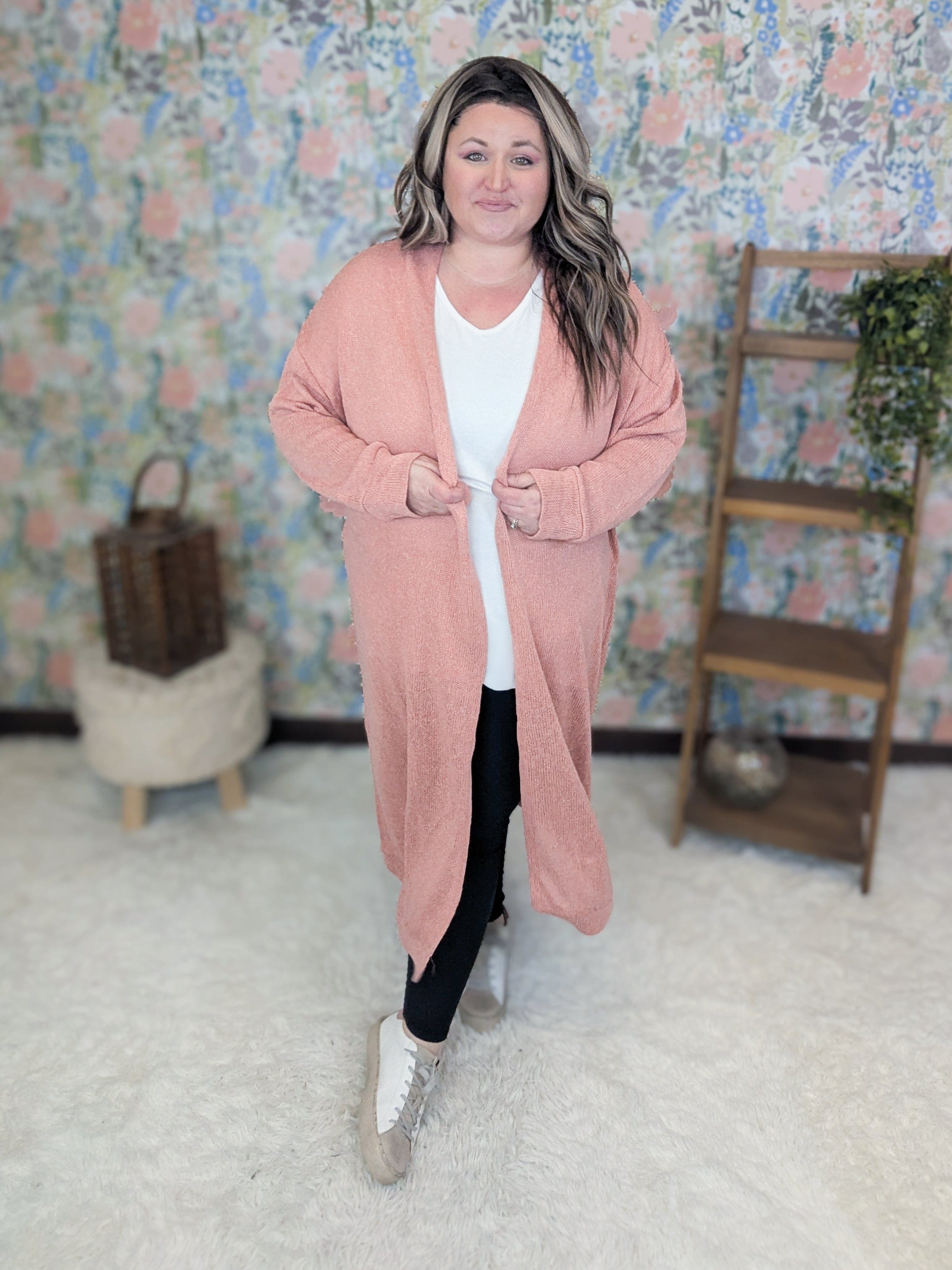 Curious about the extra long cardigan trend but not sure if it’s for you? Don’t be scared… this one is the perfect gateway to give it a try. The Lois has that dramatic longline look that’s trending everywhere, but the soft stretchy knit and beautiful solid colors keep it feeling cute, comfortable, and easy to wear. In peach, orchid, and avocado green, it’s a fun statement layer that still pairs effortlessly with dresses, leggings, or skinny jeans.