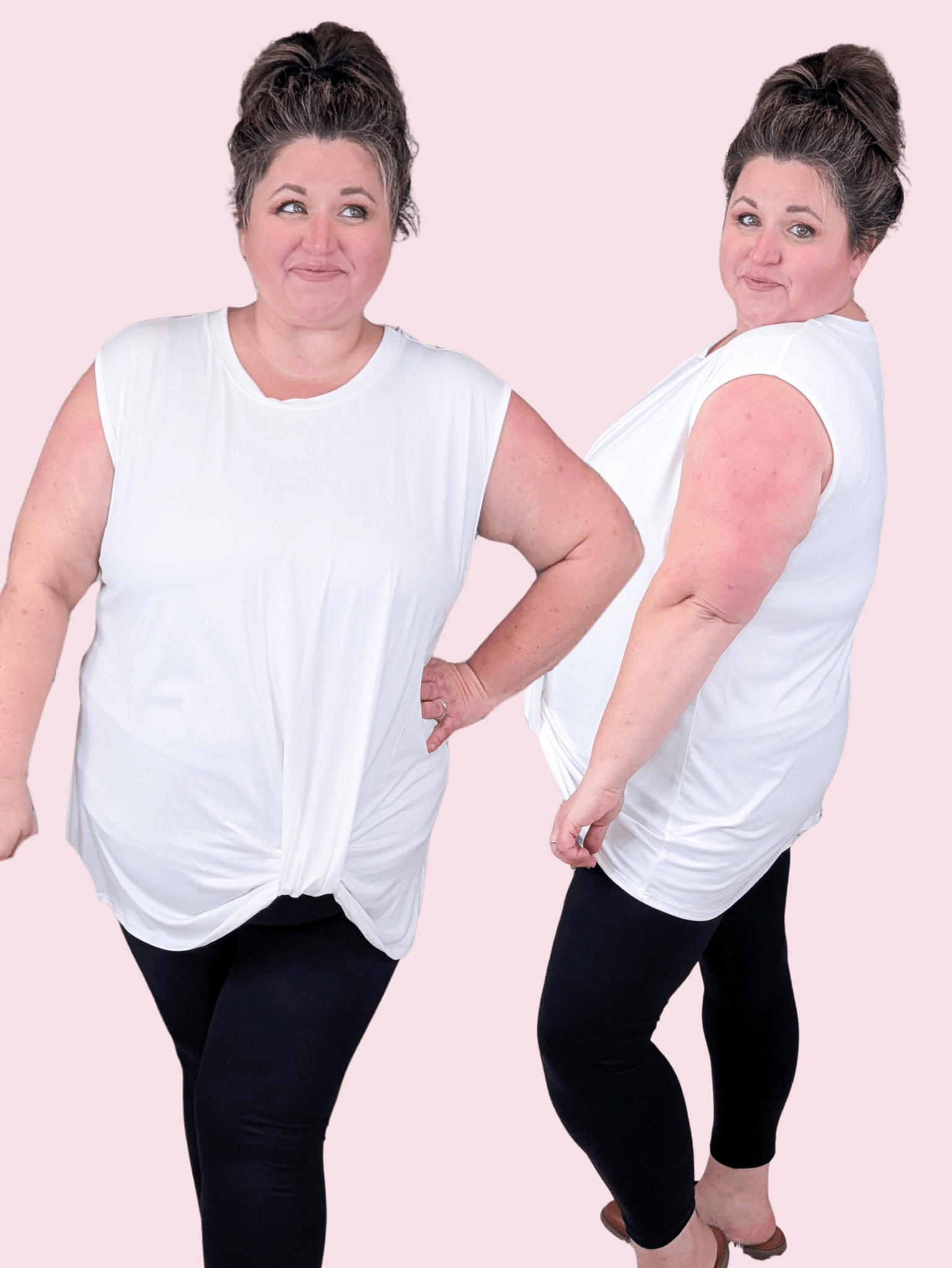 Andrea Ivory Tunic Tank w/Knot Detail – Stacked - A Plus Size Boutique