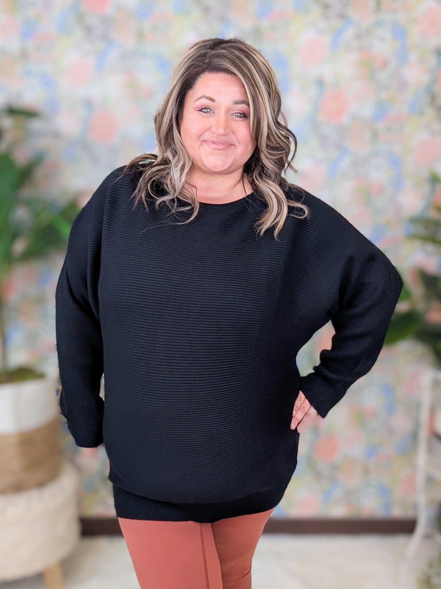 - Drop shoulder leaves slouch in the bust, shoulder and upper arm - but shape tucks in a touch at the waist to still offer shape!