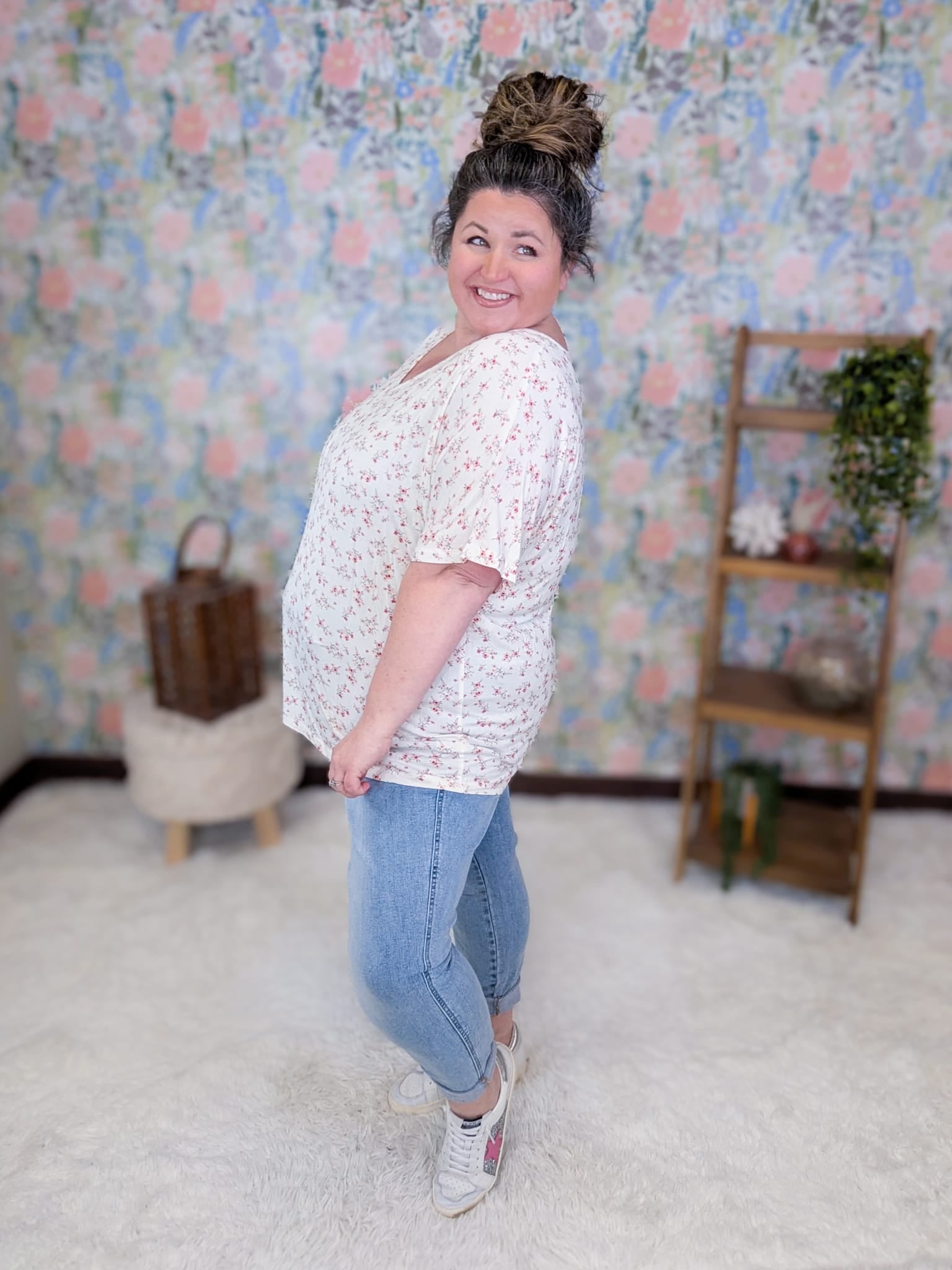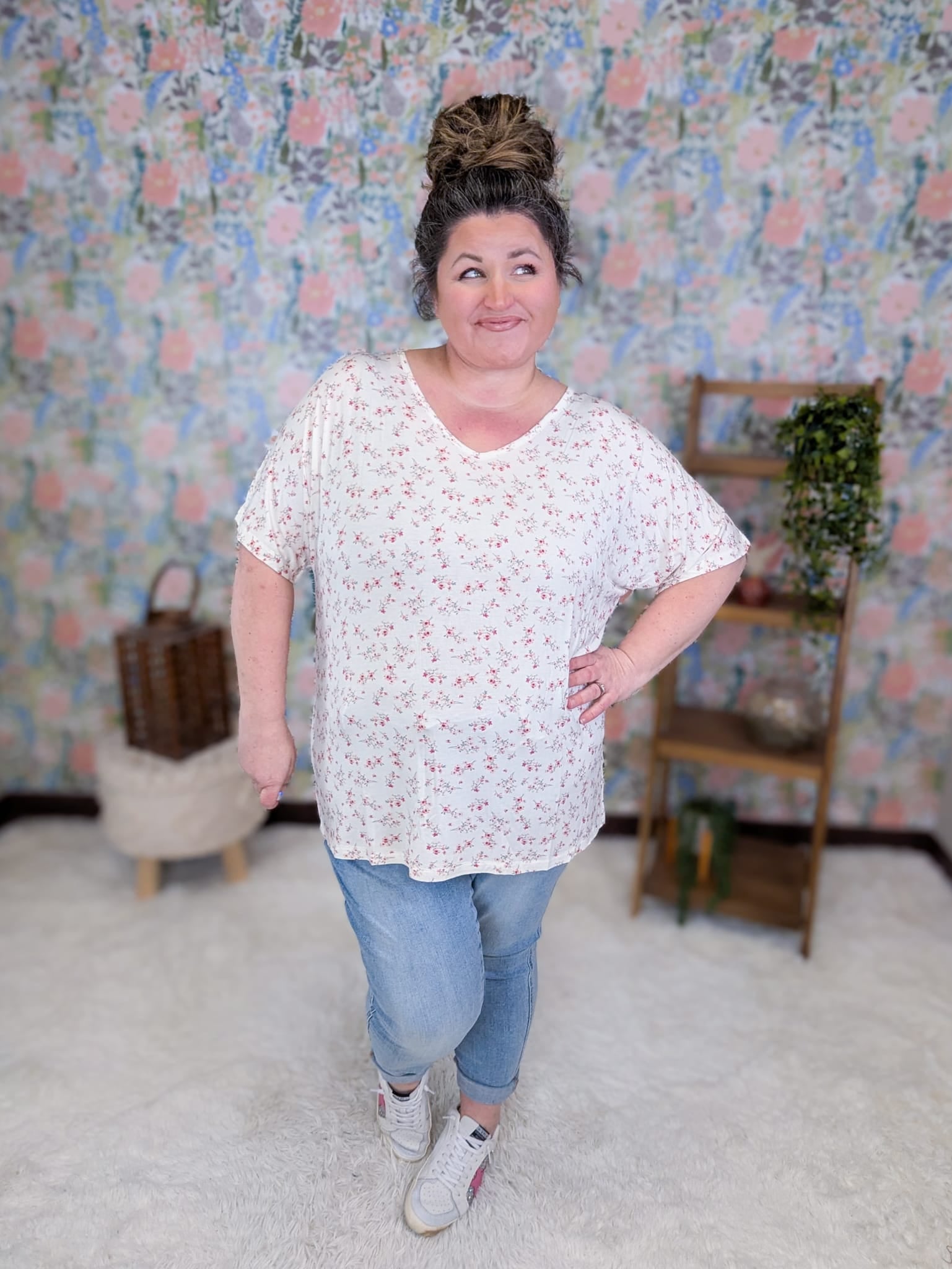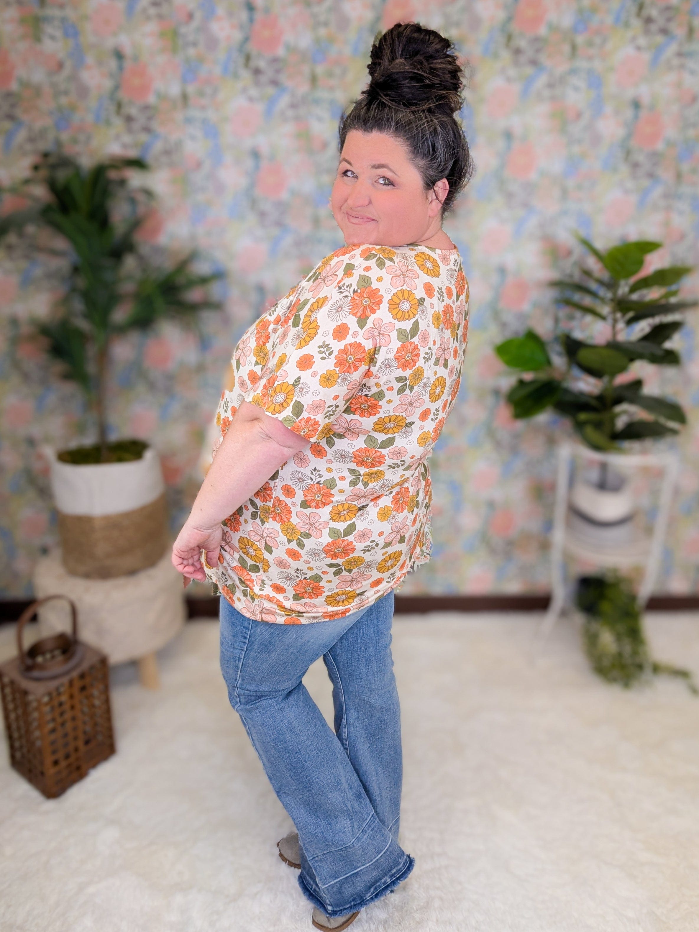 The perfect basic tee just got a print makeover! The Ashley Dolman Tee brings you everything you already love about our best-selling solid Ashley—soft, stretchy fabric, elbow-length dolman sleeves, and that flattering longer cut—but now in gorgeous florals that make it stand out. It’s comfy enough for every day, cute enough for everywhere, and seriously one of those tops you’ll wear on repeat.