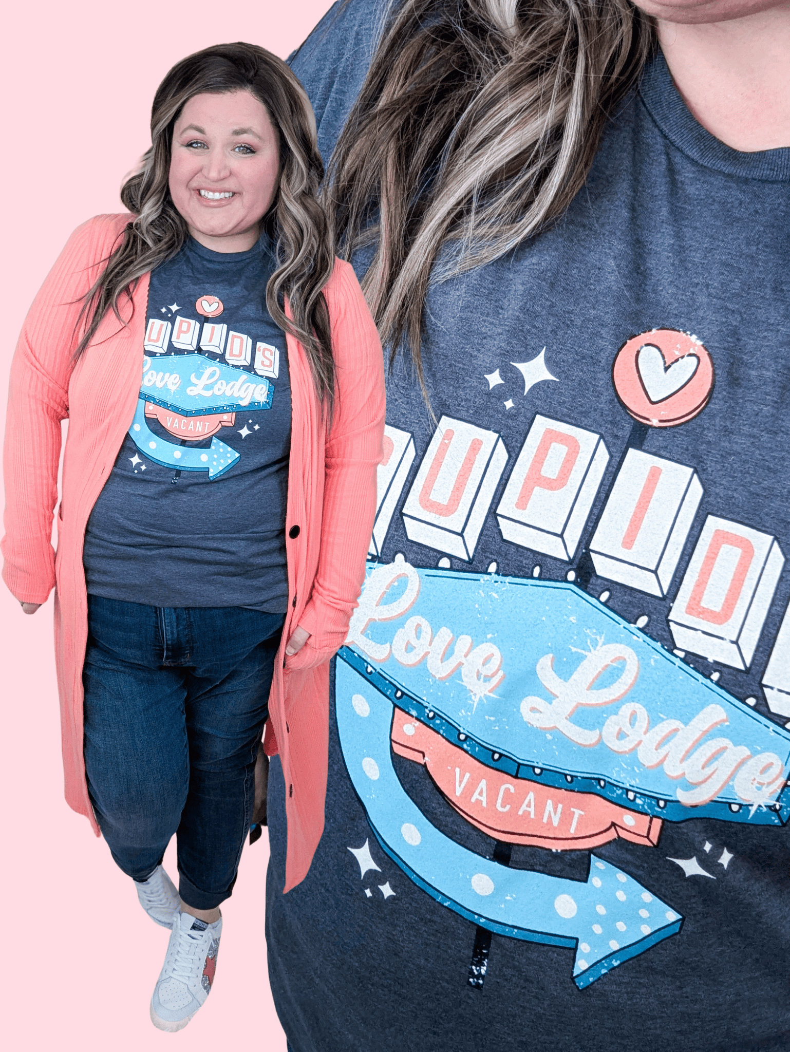 • Charcoal tee keeps it wearable long after Valentine’s Day