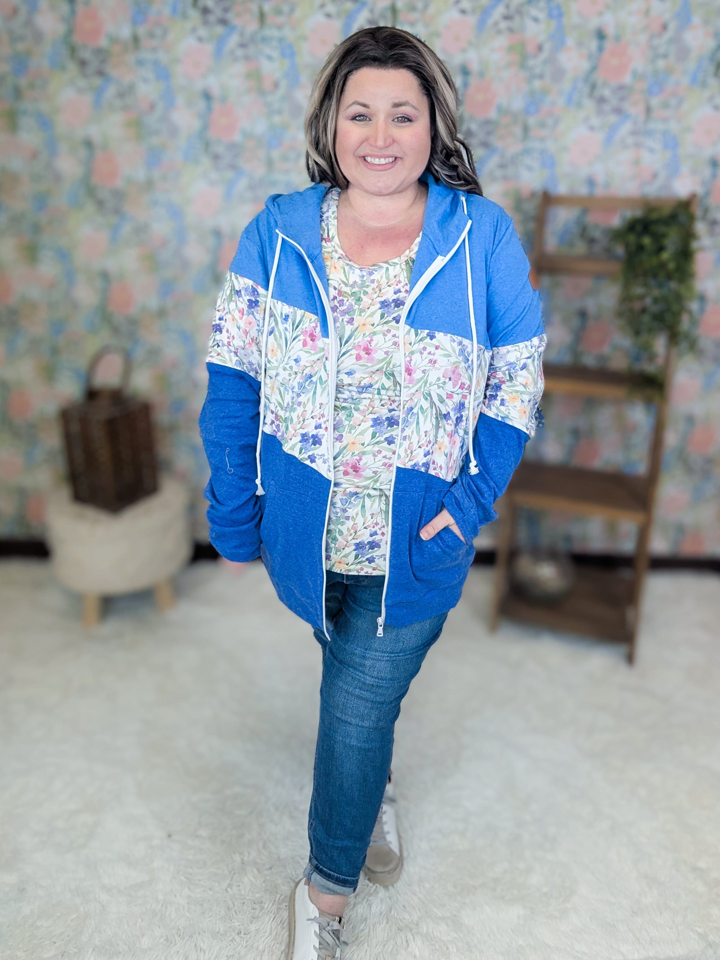 Is it possible for a hoodie to be cute enough to get compliments? This one might just prove it. Our favorite cottage wildflower print of the year finally made its way into a full zip hoodie and we’re obsessed. The mix of denim blue, the soft floral center panel, and the deep blue base gives it that perfect spring feel while still keeping the cozy hoodie vibe you love.