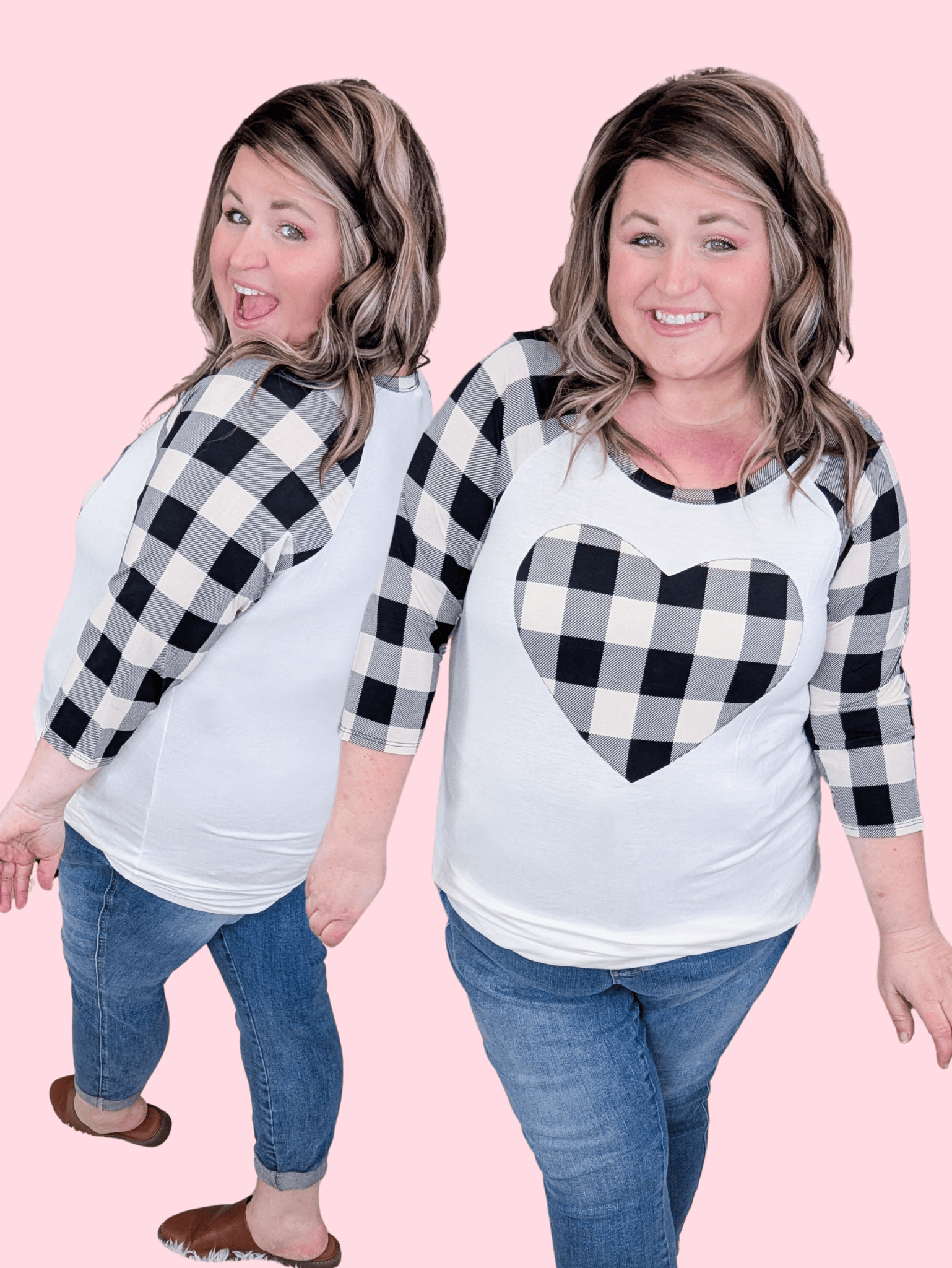 Classic neutrals but make them a little flirty. This one is giving everyday comfy with a subtle heart moment, and we love that it doesn’t scream Valentine’s while still feeling special. The plaid keeps it grounded and wearable, the heart adds just enough personality, and the whole thing feels like your favorite tee that somehow looks cuter than it should.