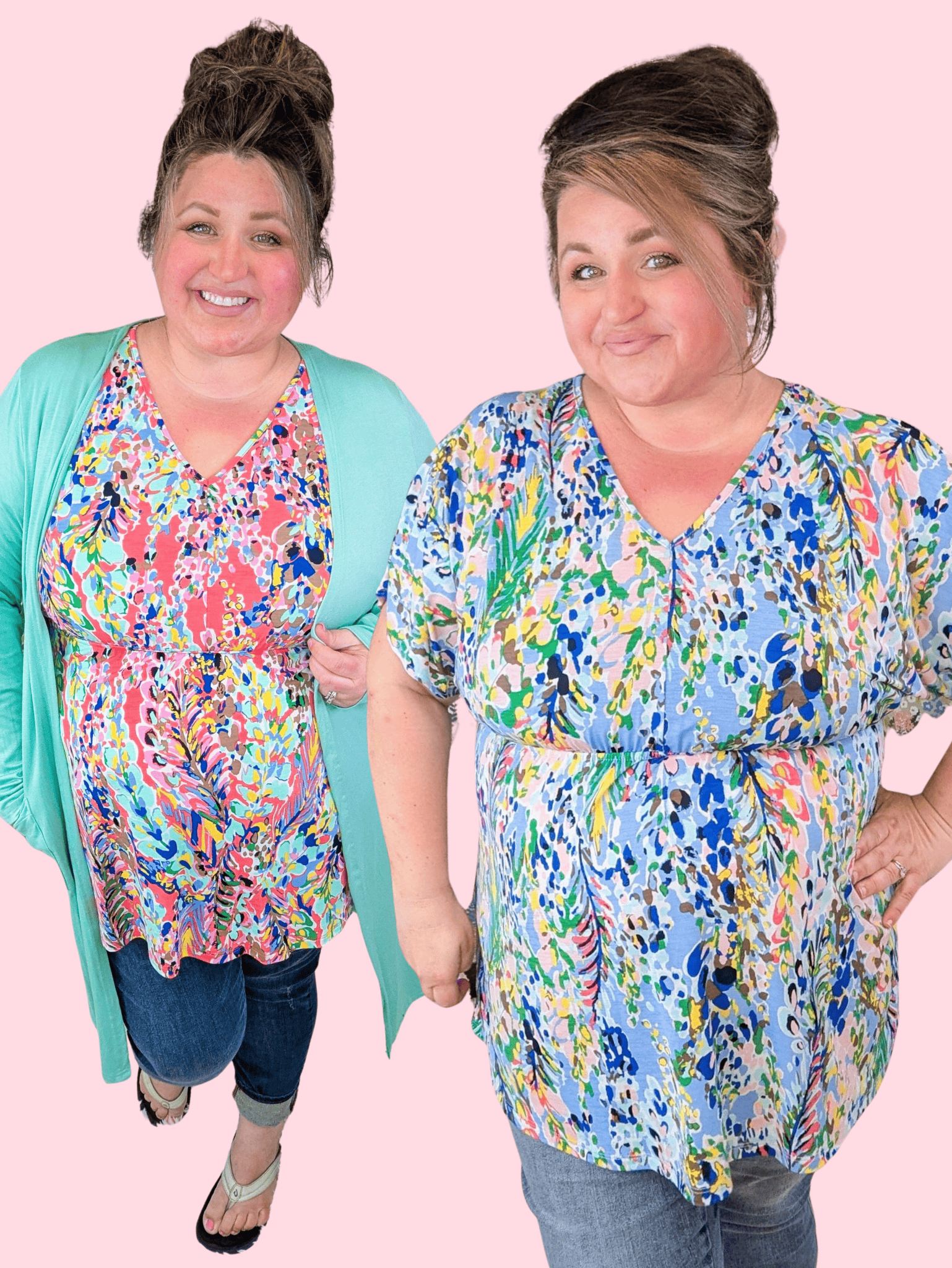 • Paired with our Tinley cardigan in aqua mint with coral and rose with blue