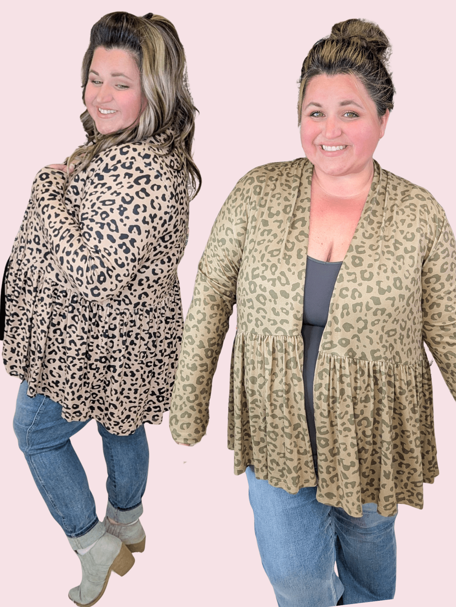 Taking leopard from bold statement to everyday favorite is what this cardigan does best. The neutral tones make it effortless to pair with anything, while the super soft, cashmere-like stretch keeps it comfy enough to throw on all the time. With a single tier that drapes longer in the back and an elastic waistline that adds shape even when left open, it’s a cardigan that feels as flattering as it does fun.