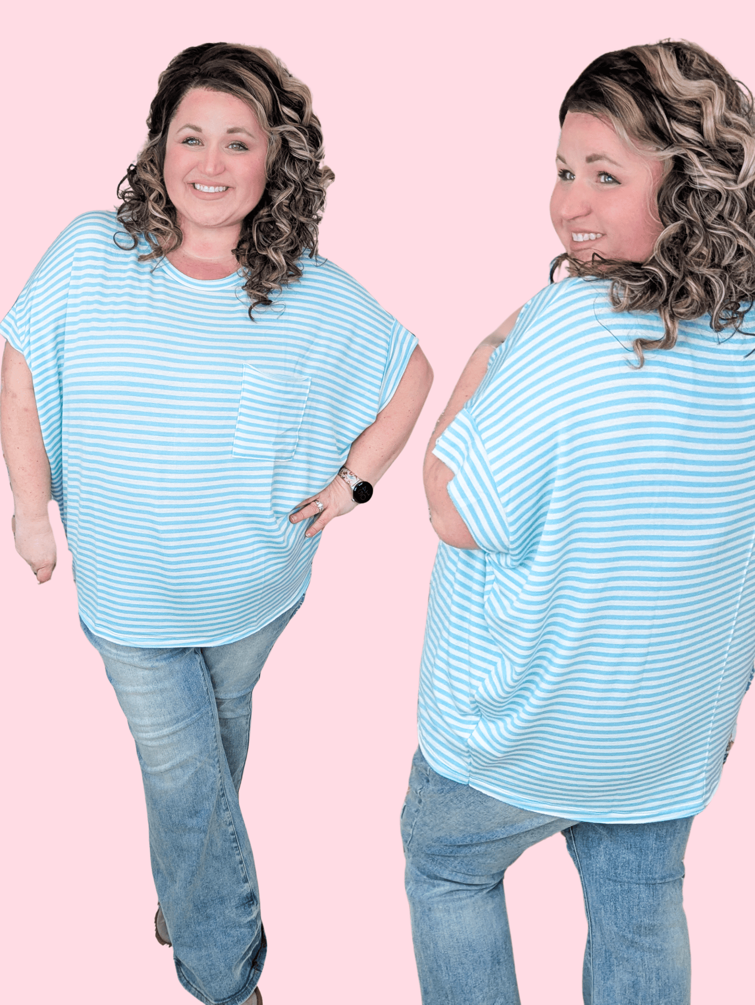This is one of those tops you put on and immediately go “oh yep, this is it.” The fabric is insanely soft, the fit is slouchy in the best way, and it brings that OMG this is actually slouchy on me even with curves vibe!! It’s relaxed, comfy, and effortlessly cute without feeling shapeless- yes please!!