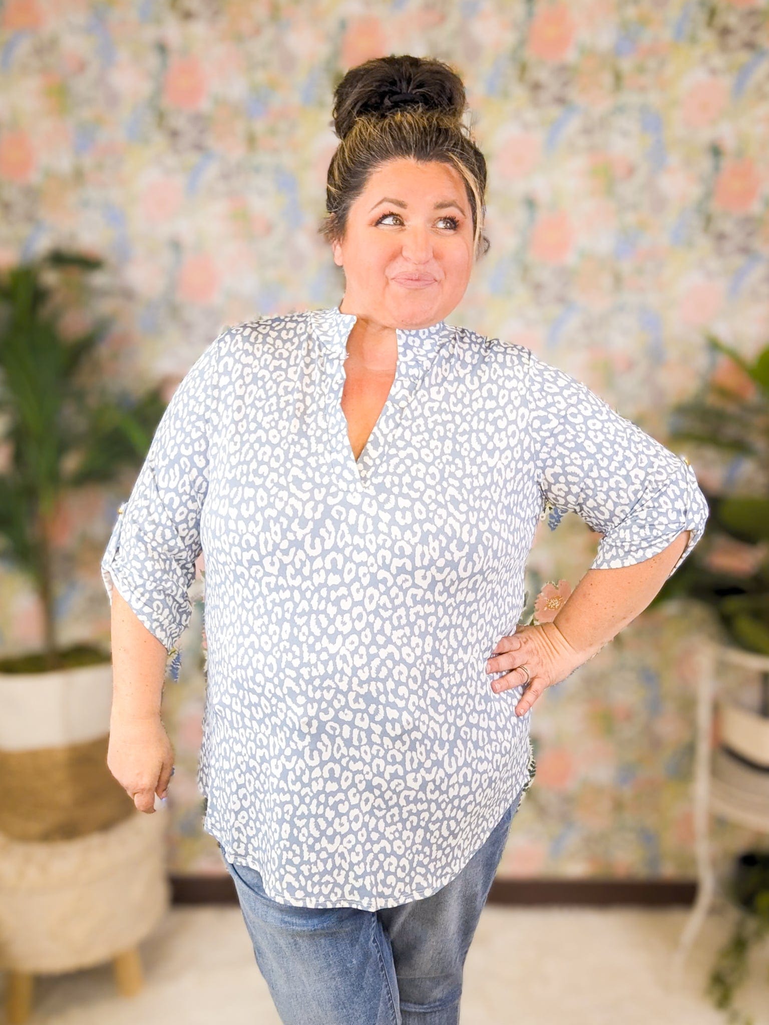 Want to dip your toe into animal print without going full-on bold? The Avril Top is your perfect starting point. The soft blue-gray base and ivory print make this one subtle, wearable, and so easy to love. It’s polished enough for work but still totally relaxed for everyday life — exactly the kind of piece that makes you feel put together without even trying.