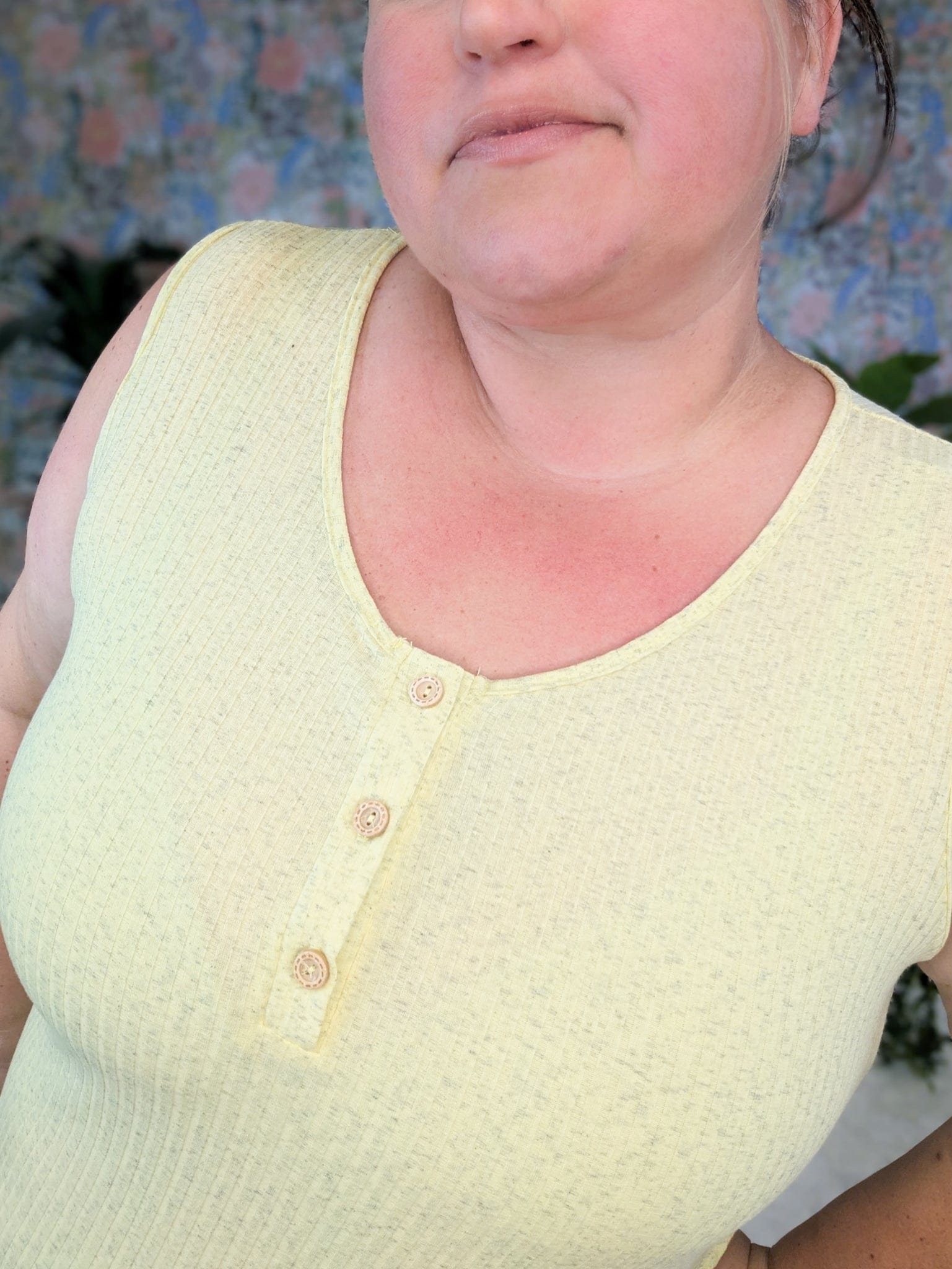The Agnes tank is that perfect piece you can wear solo or layer a million ways. With soft ribbed fabric that feels smooth (not textured), a functional Henley neckline, and easy bra coverage from the wide straps and full back, it checks every box. The heathered finish on both colors adds a casual vibe, making it just as cute with denim as it is under a cardigan.