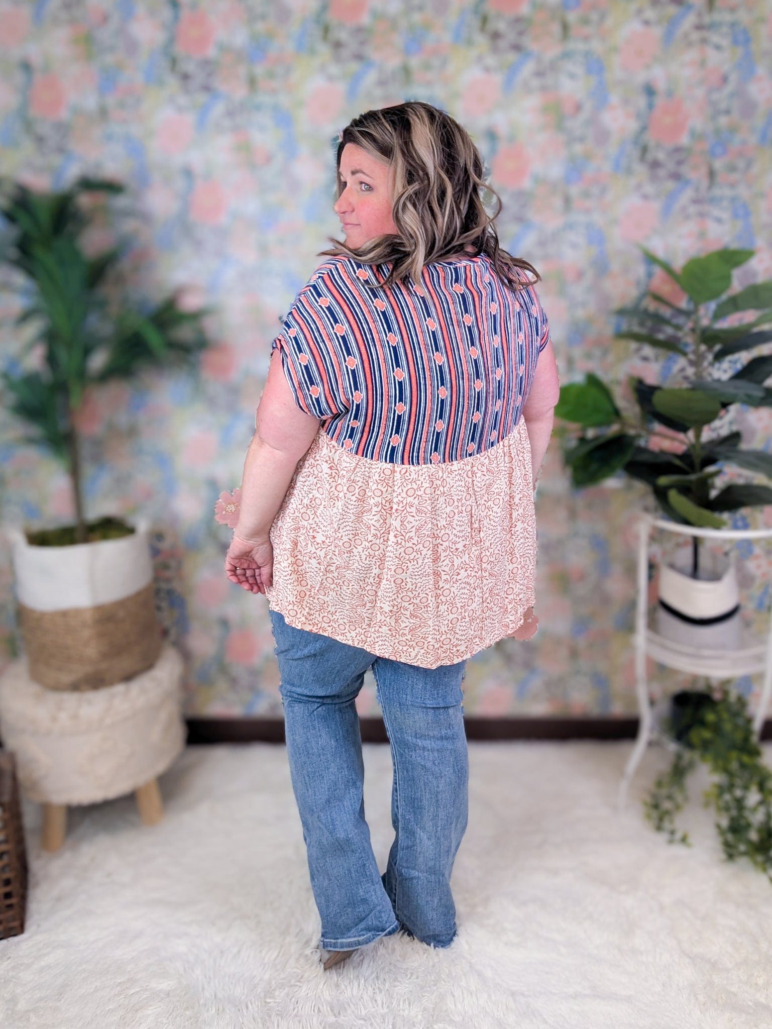 Meri Stripe Top Boho Blouse w/Floral Bottom