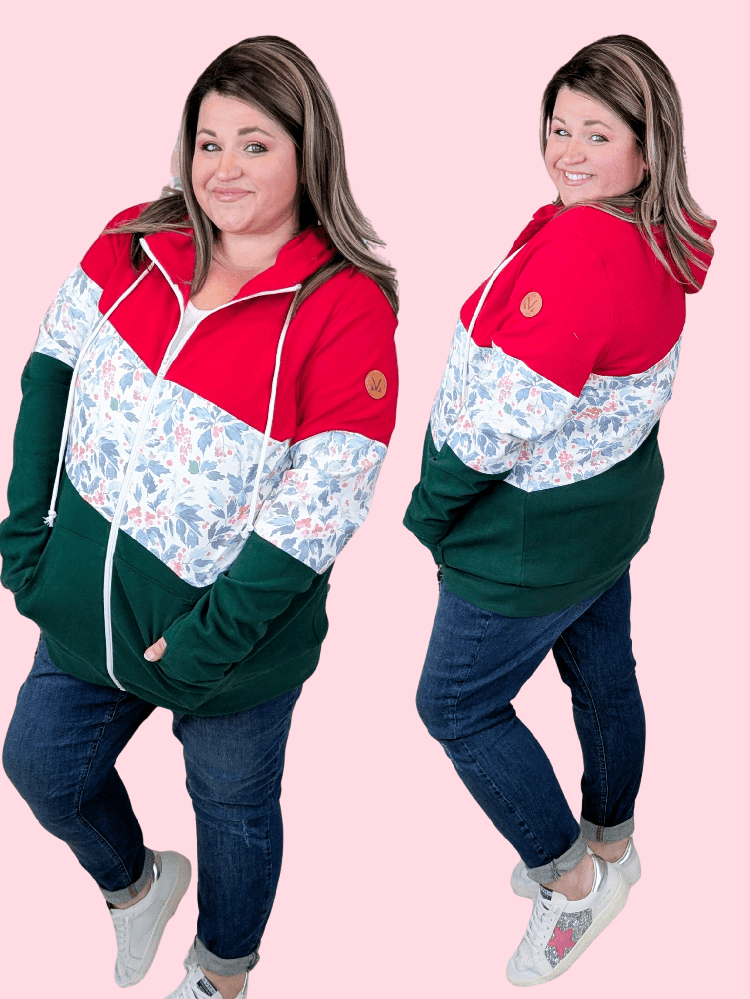 If you’re the kind of person who lives for a holiday hoodie moment, this one’s about to be your new fave. The red, evergreen, and ivory Christmas berry combo is pure festive perfection — bold and fun but still totally wearable after the holidays too. The triple stretch fabric means it moves with you (and doesn’t ride up on fuller hips or booty), while the full zip and comfy hood make it the ultimate grab-and-go layer.