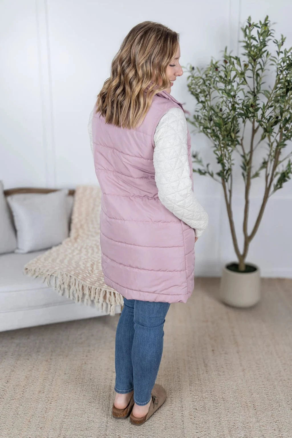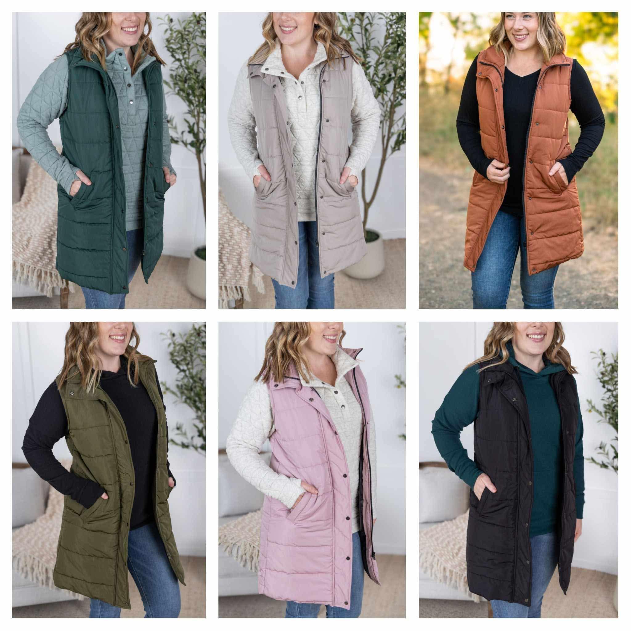 The Remington is a game-changer—streamlined and high quality with stitched horizontal quilting for style without the puffy look. It has a slinky (but not shiny) finish inside and out, so it slides right over your tops with ease. Designed in a straight cut, it hits around the top of the knee and features a single-direction zipper that starts about 5" up from the bottom for extra comfort when sitting. Finished with pockets, a collar, and both zipper and snap closures, this is the puffer-inspired vest we thought didn’t exist for curvy shapes—until now.