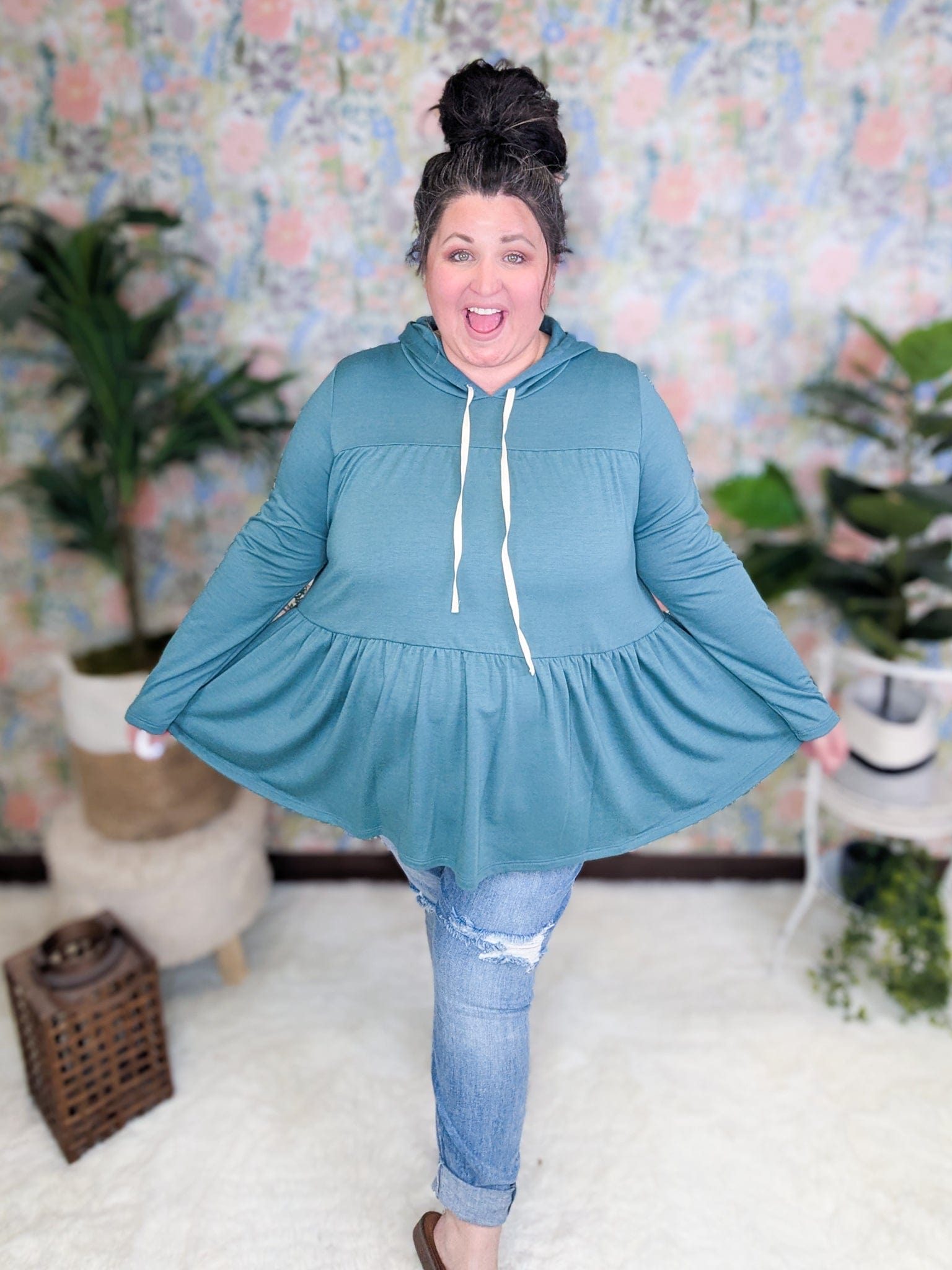 Looking for a hoodie that's as cute as it is comfy? This double-tiered babydoll hoodie is your new best friend. The flowy design and soft fabric make it perfect for those days when you want to feel relaxed but still look put together. Whether you're running errands, meeting friends for coffee, or just lounging at home, this hoodie has got you covered. Plus, it comes in four adorable colors, so you can pick the one that suits your style best.