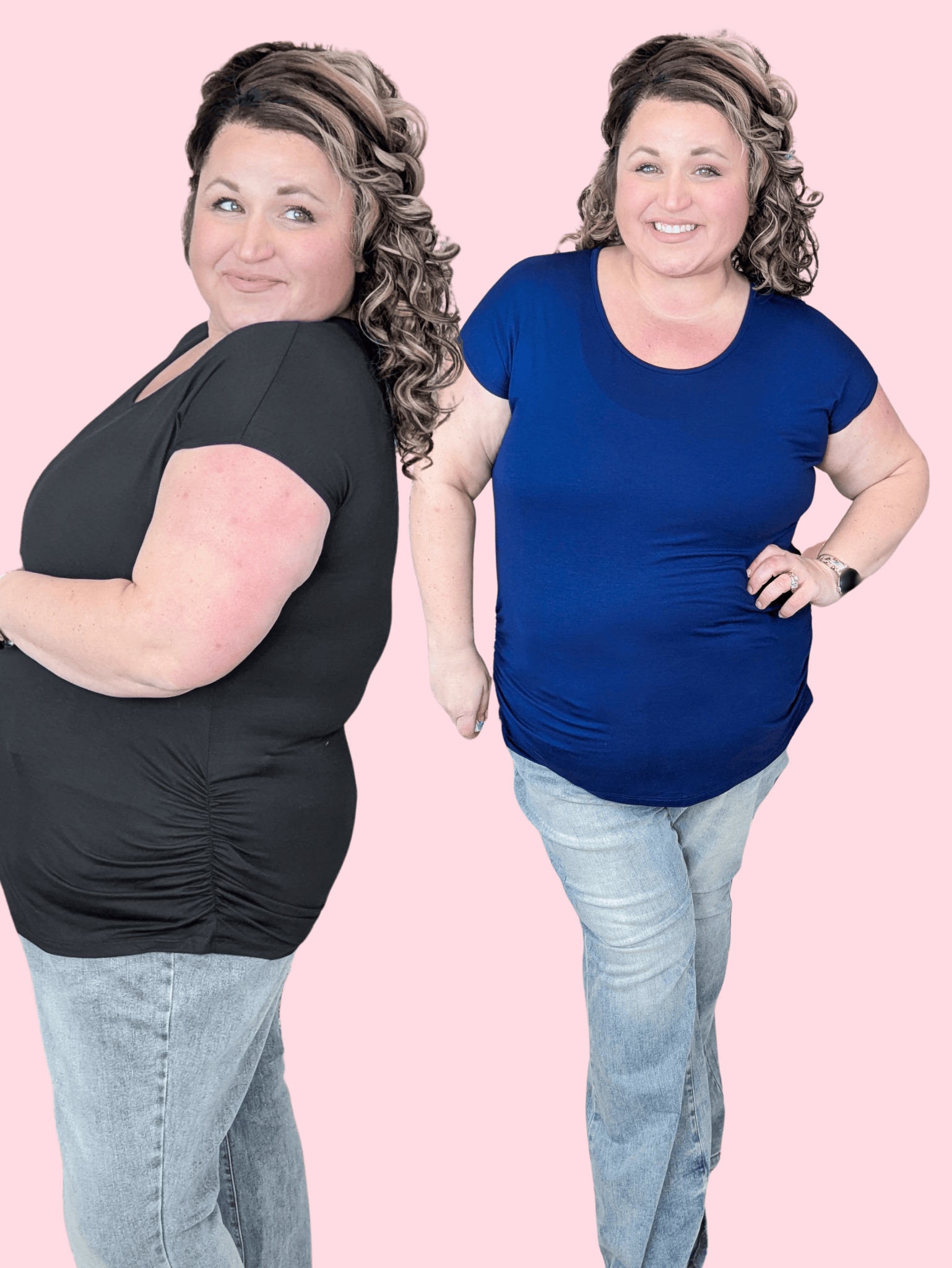 This is one of those basics that instantly feels more flattering the second you put it on. The ruched sides add shape and texture right where you want it, giving you that pulled-together look without feeling tight or fussy. Easy enough for everyday, polished enough to layer for work.