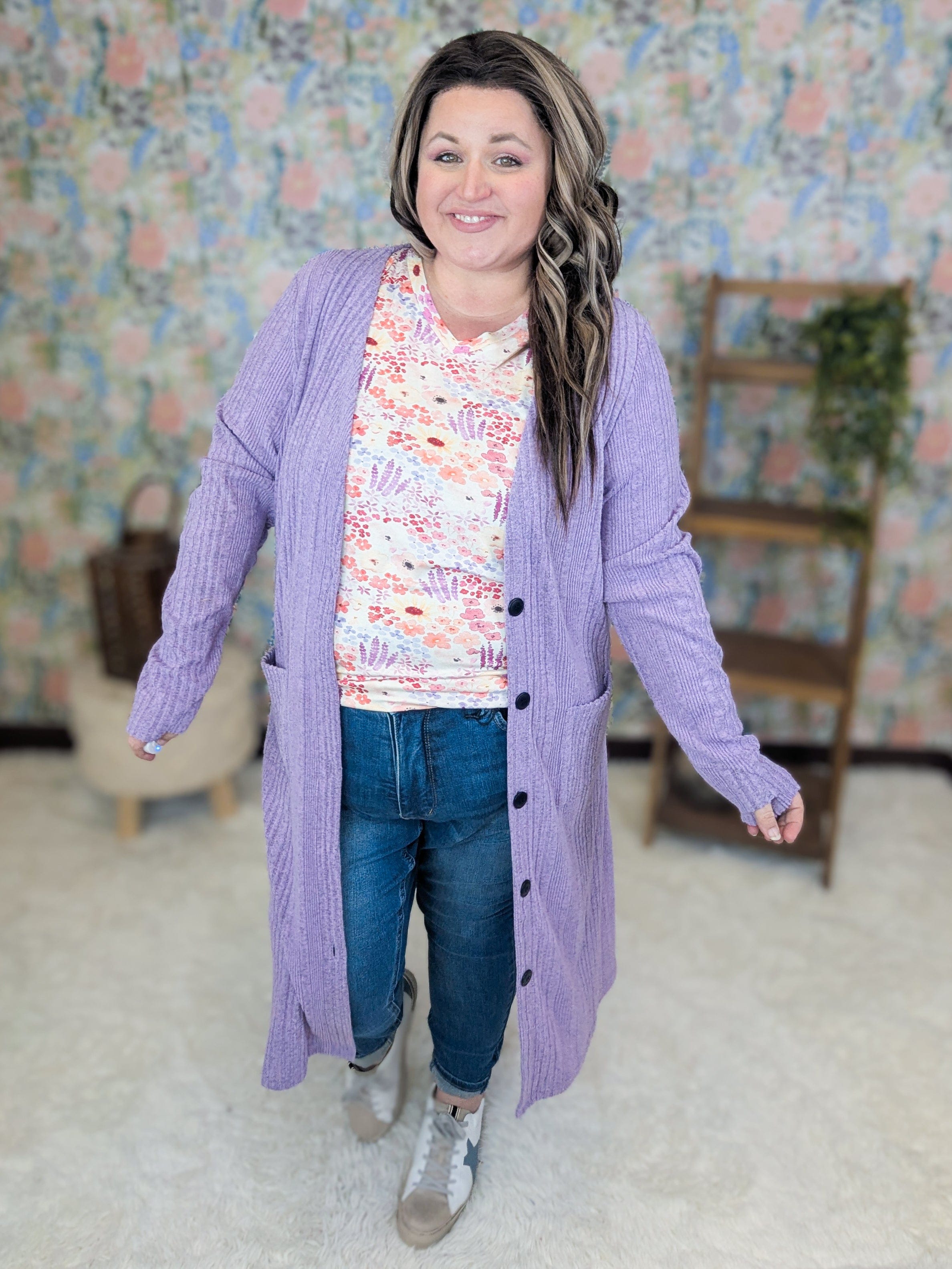 - COTTAGE WILDFLOWER IS PAIRED WITH OUR WHITNEY CARDIGAN IN TURQUOISE (BUT MATCHES ALL THE COLORS!)