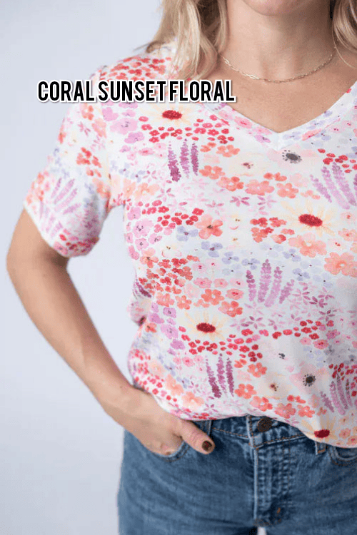 We don’t like to play favorites… but this tee is making a very strong case. The almost-elbow sleeve with that pinned cuff (never unrolls), the modest v-neck with a super flattering cut, and the relaxed room through the belly where you actually want it — it’s effortless, comfortable, and ridiculously easy to wear. Add in the floral prints, and suddenly your everyday tee feels a little extra special. Love our pocketful of perfect tees? This is her pocket-free sister!