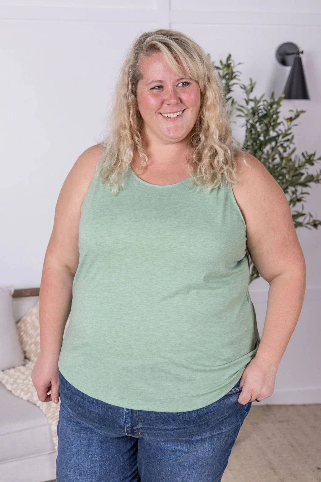 The Tiffanie has that worn-in, breathable feel you’ll want on repeat - lightweight, stretchy, and soft in all the right ways. The scoopneck and high back keep things flattering and bra-friendly, and those soft heathered shades of lilac and sage make it total layering perfection. Easy, comfy, and always a yes.