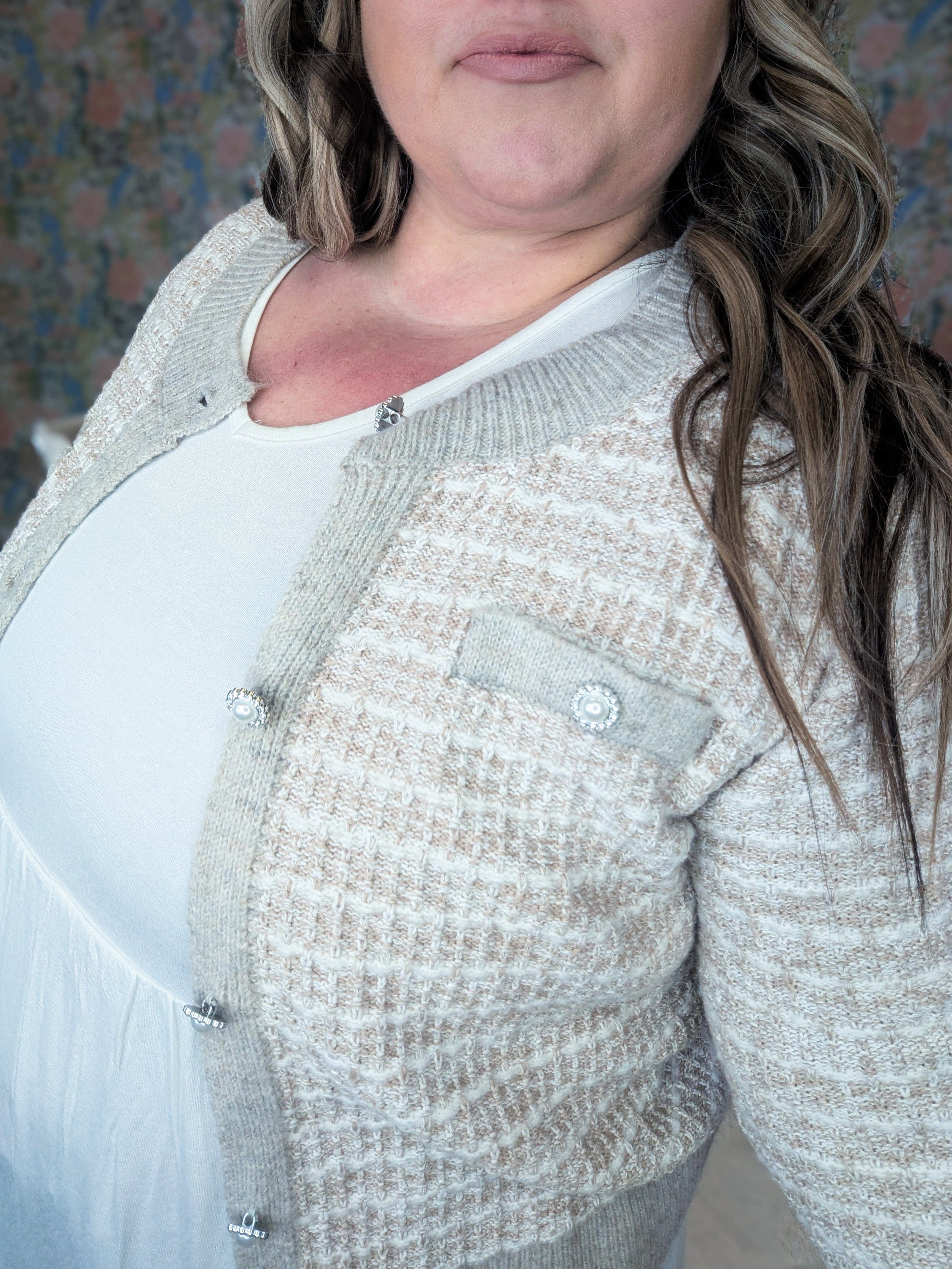 • Beautiful taupe and cream tweed look that can pick up a soft blush tone with certain pairings