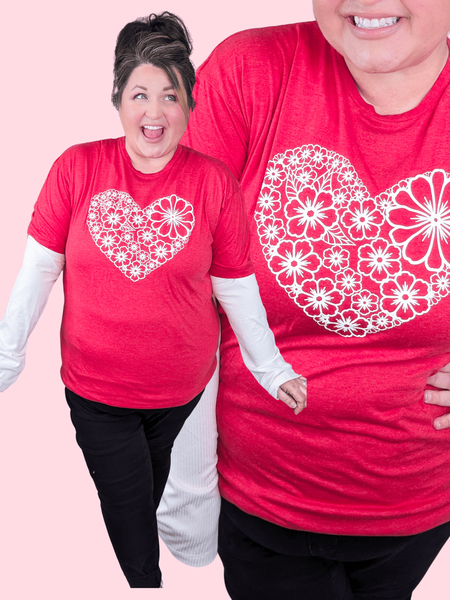 This one is sweet without being over-the-top and honestly just really wearable. A heathered red tee with a heart made of white sketched florals gives you that soft, pretty vibe that feels special but still totally everyday. It’s one of those graphics that works now and sticks around in your closet long after the season passes.