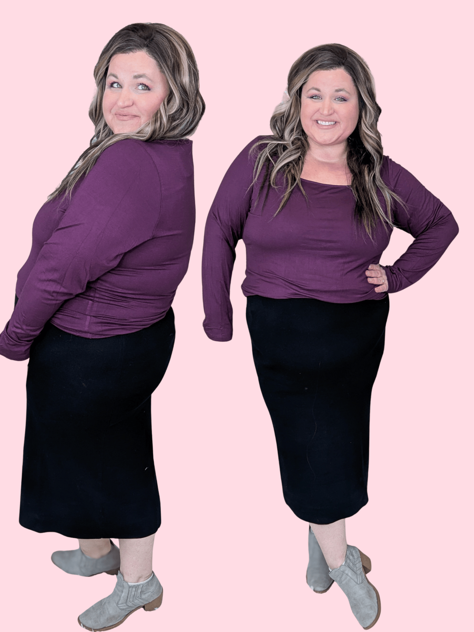 This is one of those pieces that instantly makes outfits feel more pulled together without making life harder. A classic black midi skirt in a soft, stretchy sweater knit is the kind of wardrobe staple you end up reaching for way more than expected. It works for days you need to look polished, days you want comfy but cute, and everything in between.