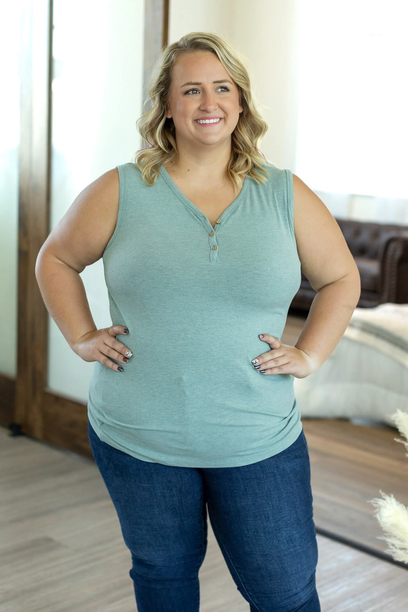 The Taryn tank takes everything you love about a layering piece and makes it better. Made from our dreamy triple stretch fabric, this one moves every direction—left, right, up, down—for comfort that’s next level. The wide straps keep your bra under wraps, the wood-look buttons add that casual detail, and the longer length means it works just as well with leggings as it does with jeans. With tons of colors in solids, it’s the kind of tank you’ll grab again and again.