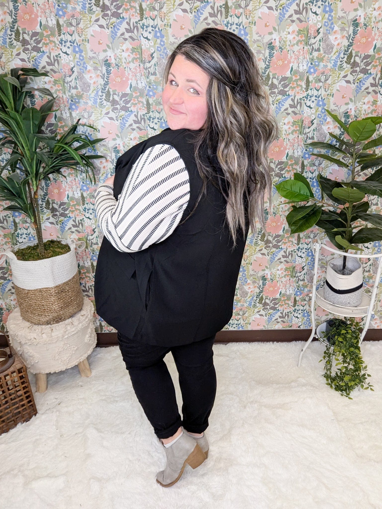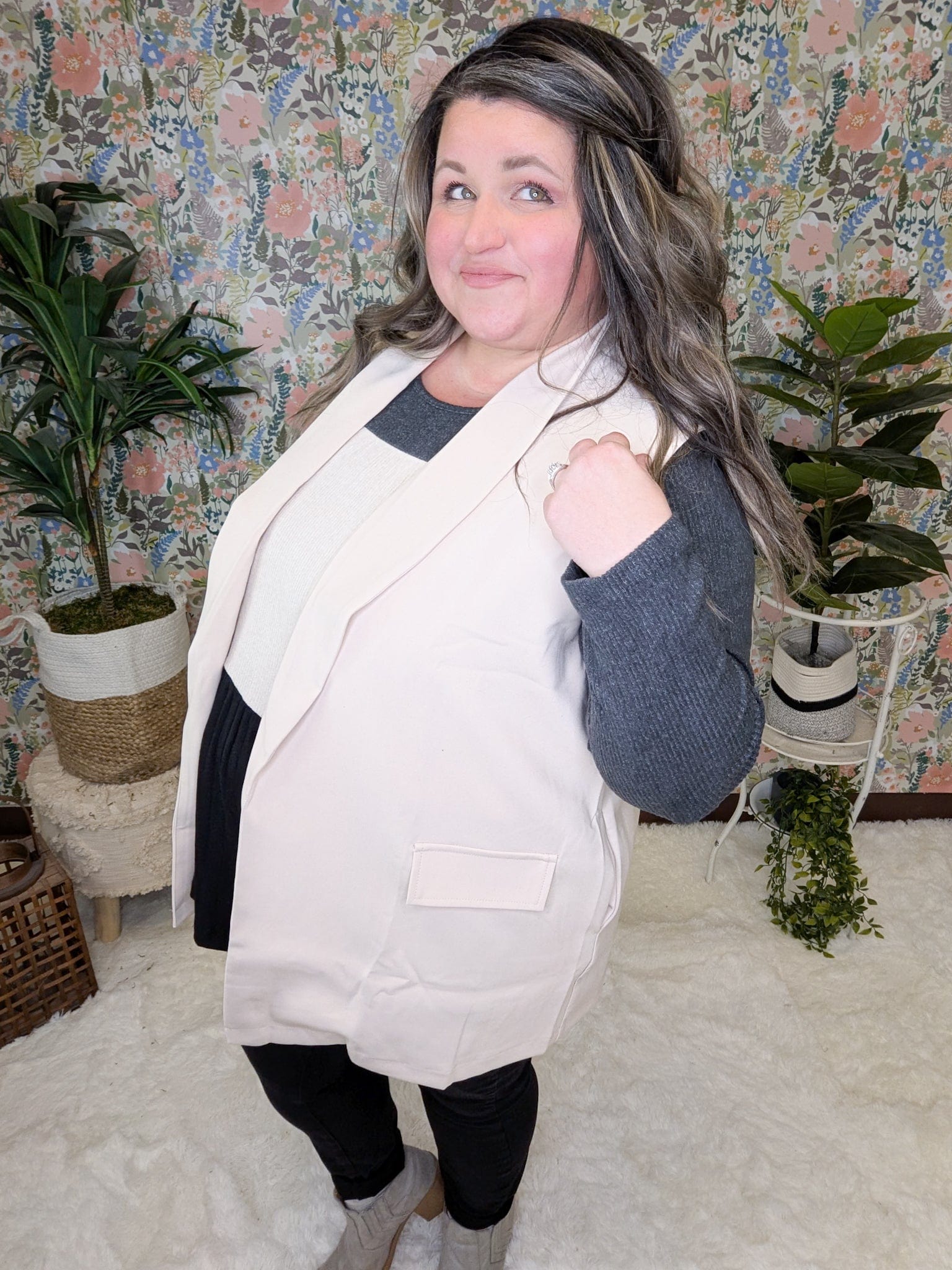 Want a fun new way to layer? The Jenna Blazer Vest is the trend you’ll be obsessed with. Toss it on with jeans and a tee for an elevated casual vibe, or dress it up for work—the versatility is unmatched. It’s giving blazer polish with a sleeveless, comfy cut that makes layering feel fresh and easy. The best part? It looks chic, feels effortless, and is so wearable you’ll wonder how you did outfits without it.