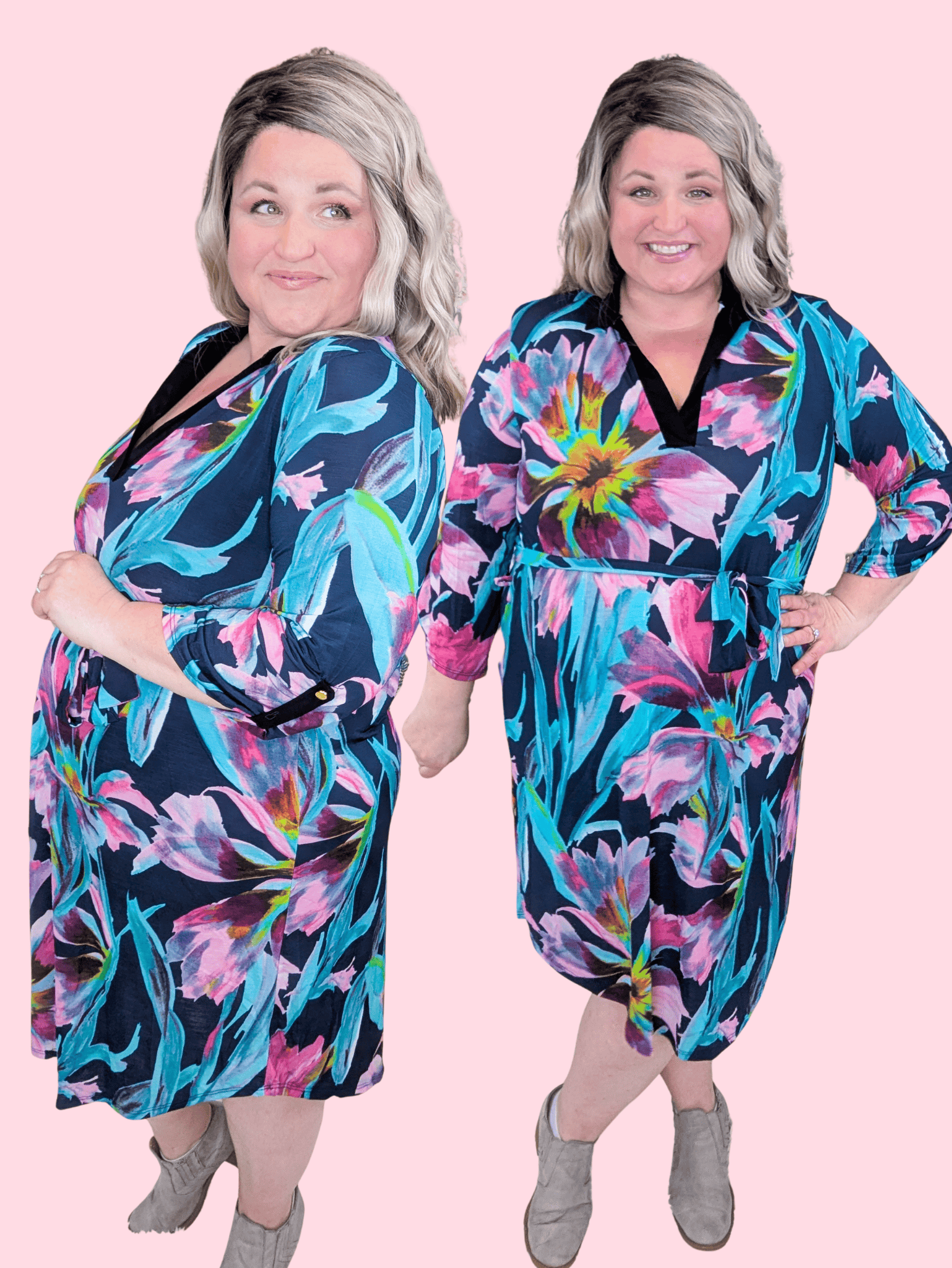 Is there anything better than a navy floral dress that feels polished but still totally easy to wear? This one gives you that classic navy base we all love, but with a stunning painted watercolor floral that makes it feel special without being fussy. It’s the kind of dress you can throw on for work, church, dinner, or an event and instantly feel put together without overthinking it.