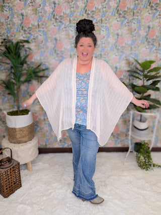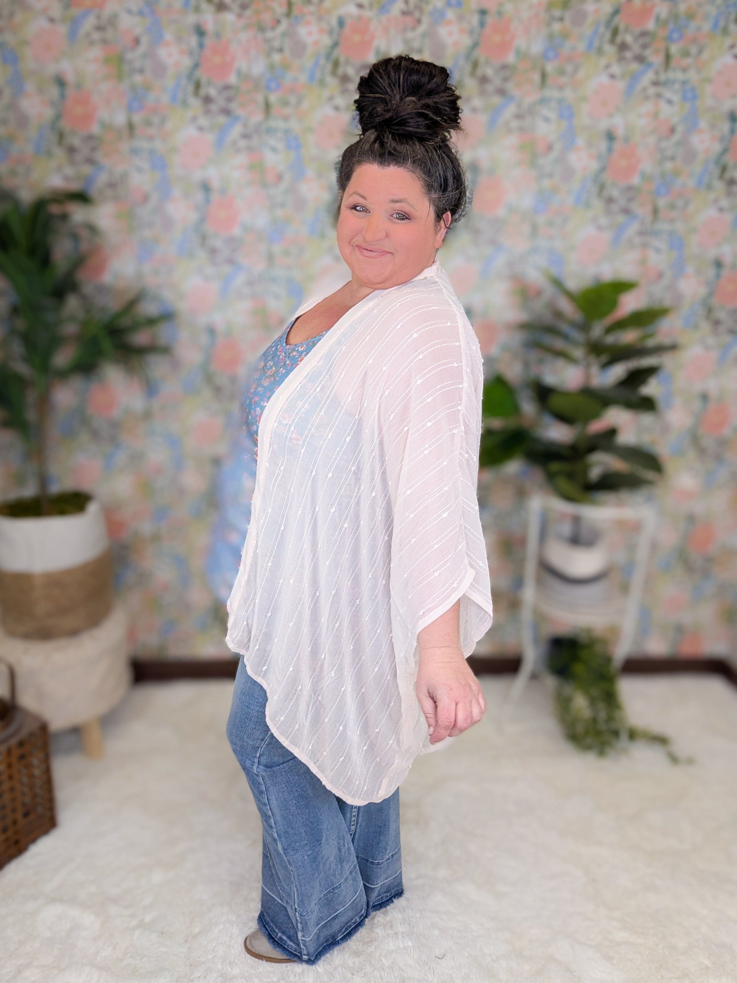 - Embroidered textured vertical stripes with subtle but darling clear sequins scattered lightly