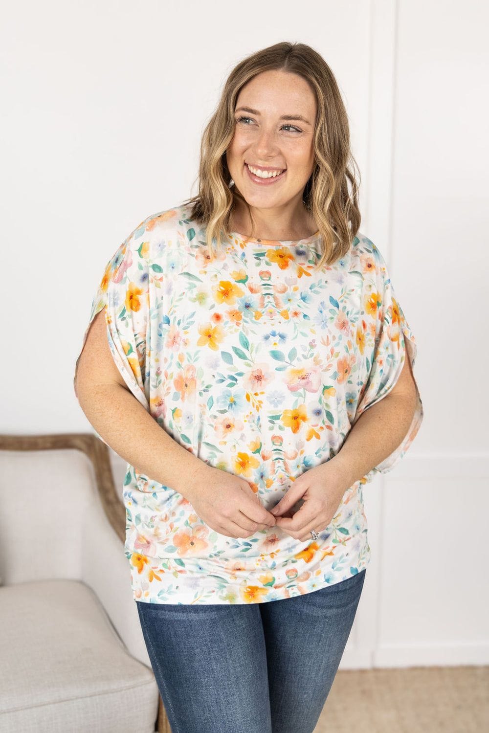• True to size for an intentionally slouchy look (shown on Michele in the ivory with bright floral)