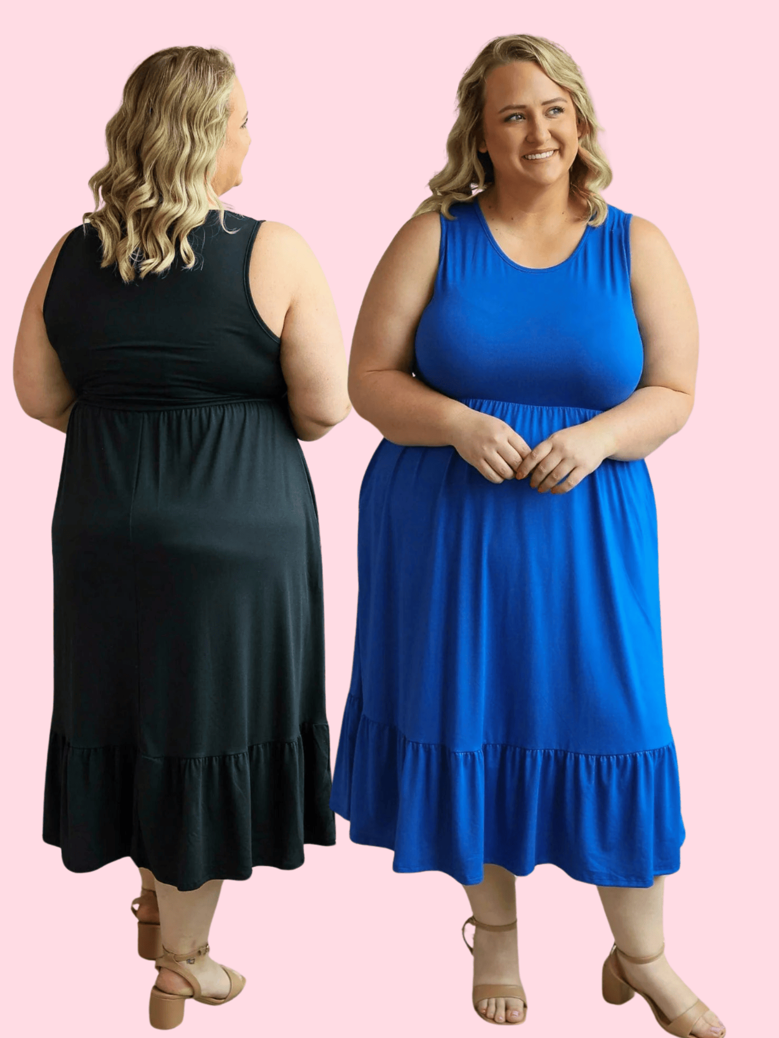 The perfect length with a feminine feel… but still so easy to wear. The Lennon is that soft, stretchy tank dress that feels like leggings but looks completely put together. The midi length gives great coverage, the subtle ruffle hem adds just enough movement, and the solid colors make styling effortless. Throw it on with sandals, layer it under a denim jacket or blazer, and go. And yes, she has pockets.