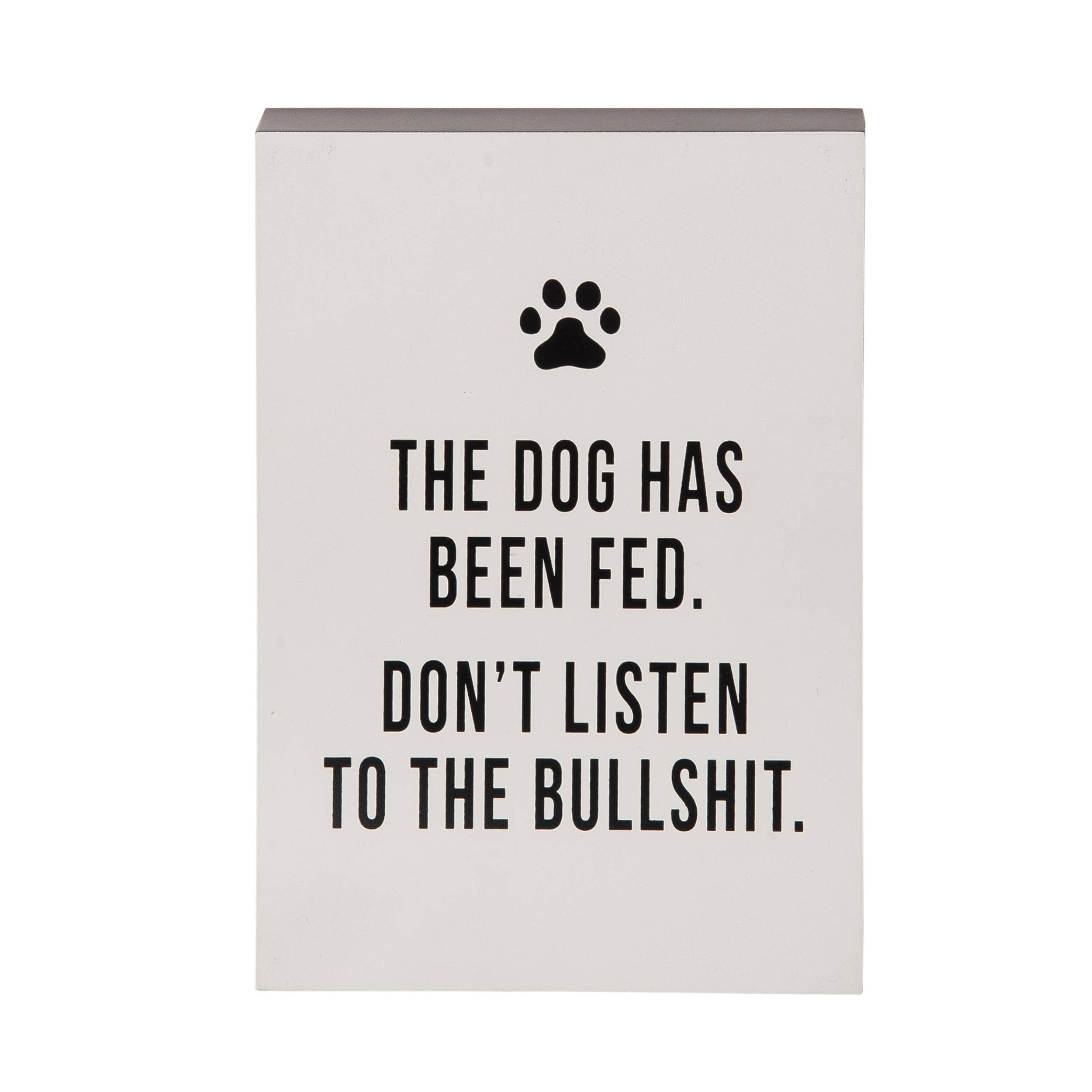 • “The dog has been fed. Don’t listen to the bullshit” printed design