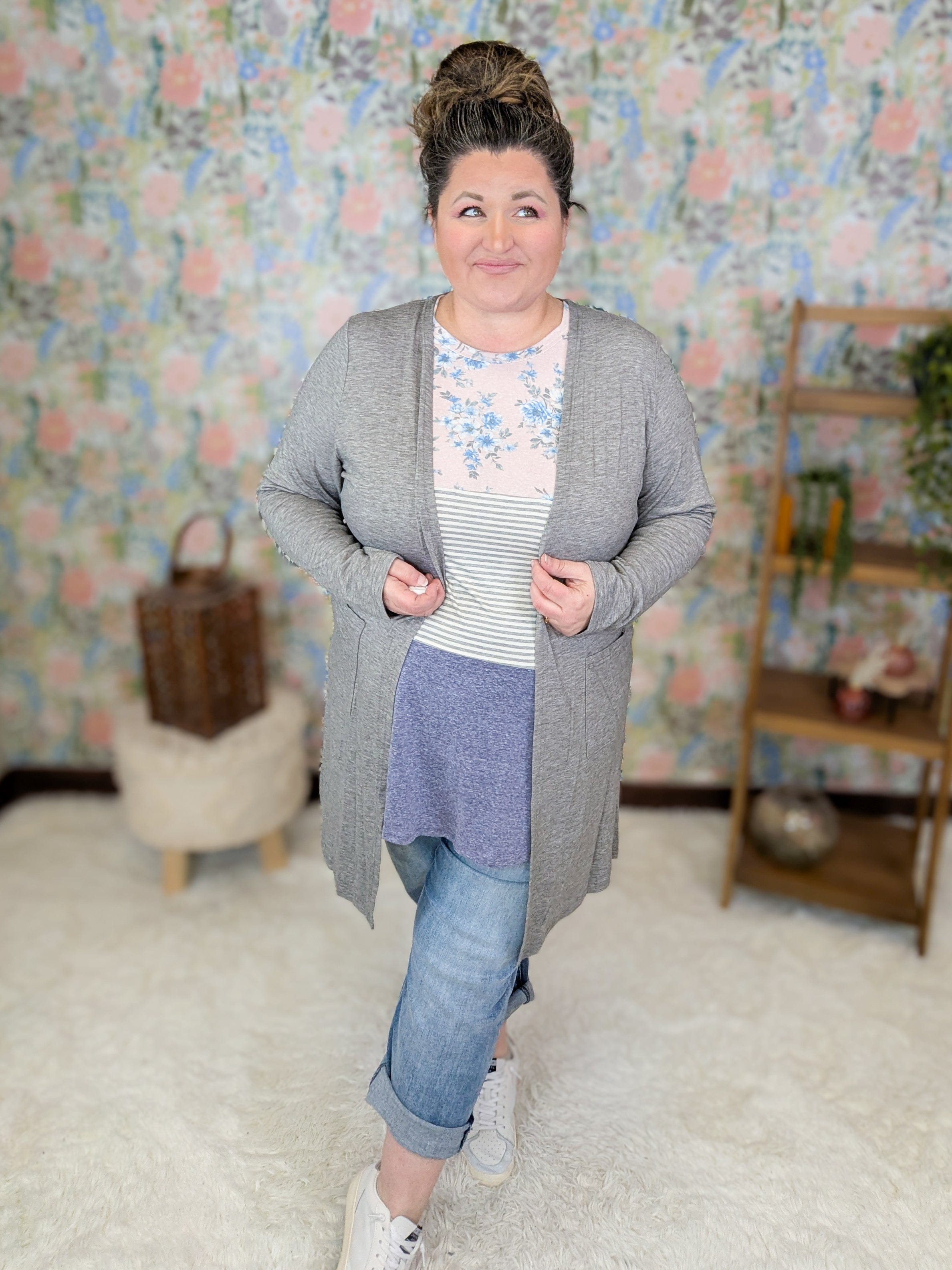 Want something with cute details but still totally easy to wear? The Anita tank gives you the best of both worlds. A soft floral top, flattering stripe center, and simple solid bottom keep things fun without feeling busy, while the strappy front and back detail adds just enough personality to make a basic tank feel special. It’s lightweight, easy length (not too long, not cropped), and perfect worn alone with denim or layered under your favorite cardigan when you want coverage but still want those cute Colorblock details peeking through.